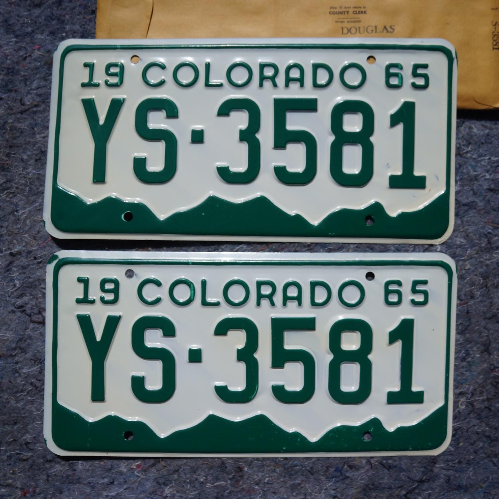 1965 Colorado License Plate PAIR / SET - Unused Excellent Condition