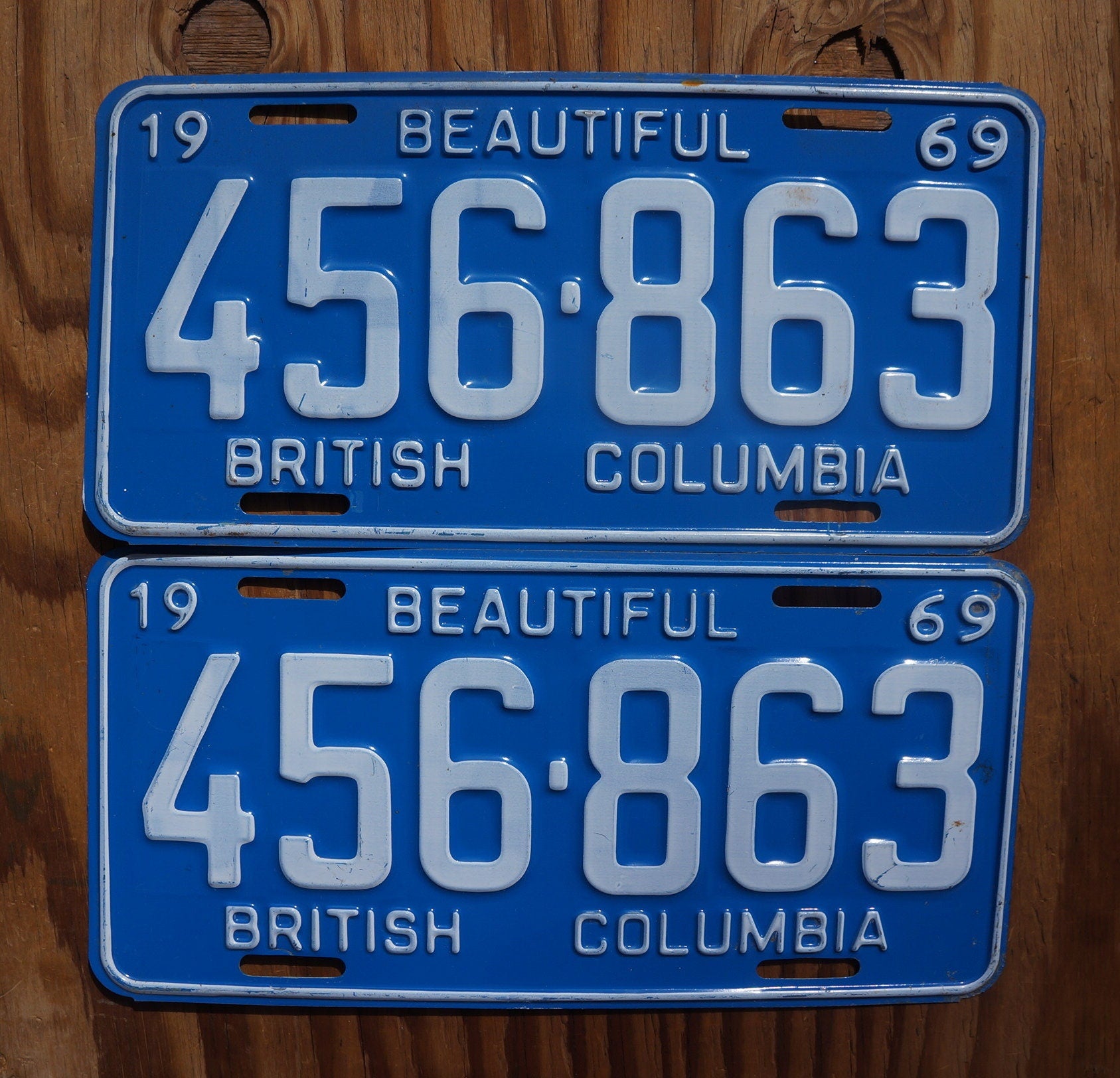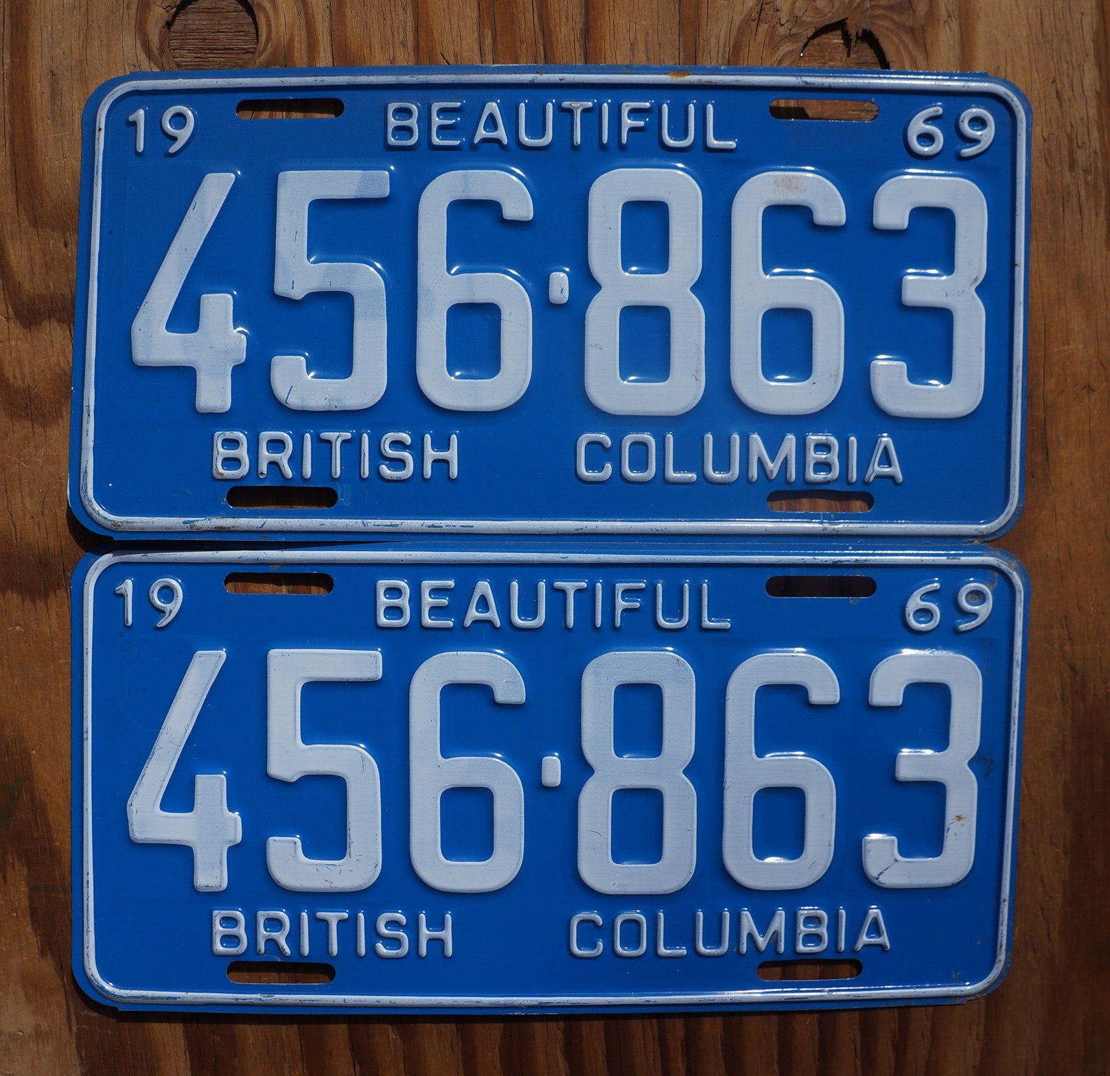 1969 Vintage British Columbia Canada License Plate PAIR