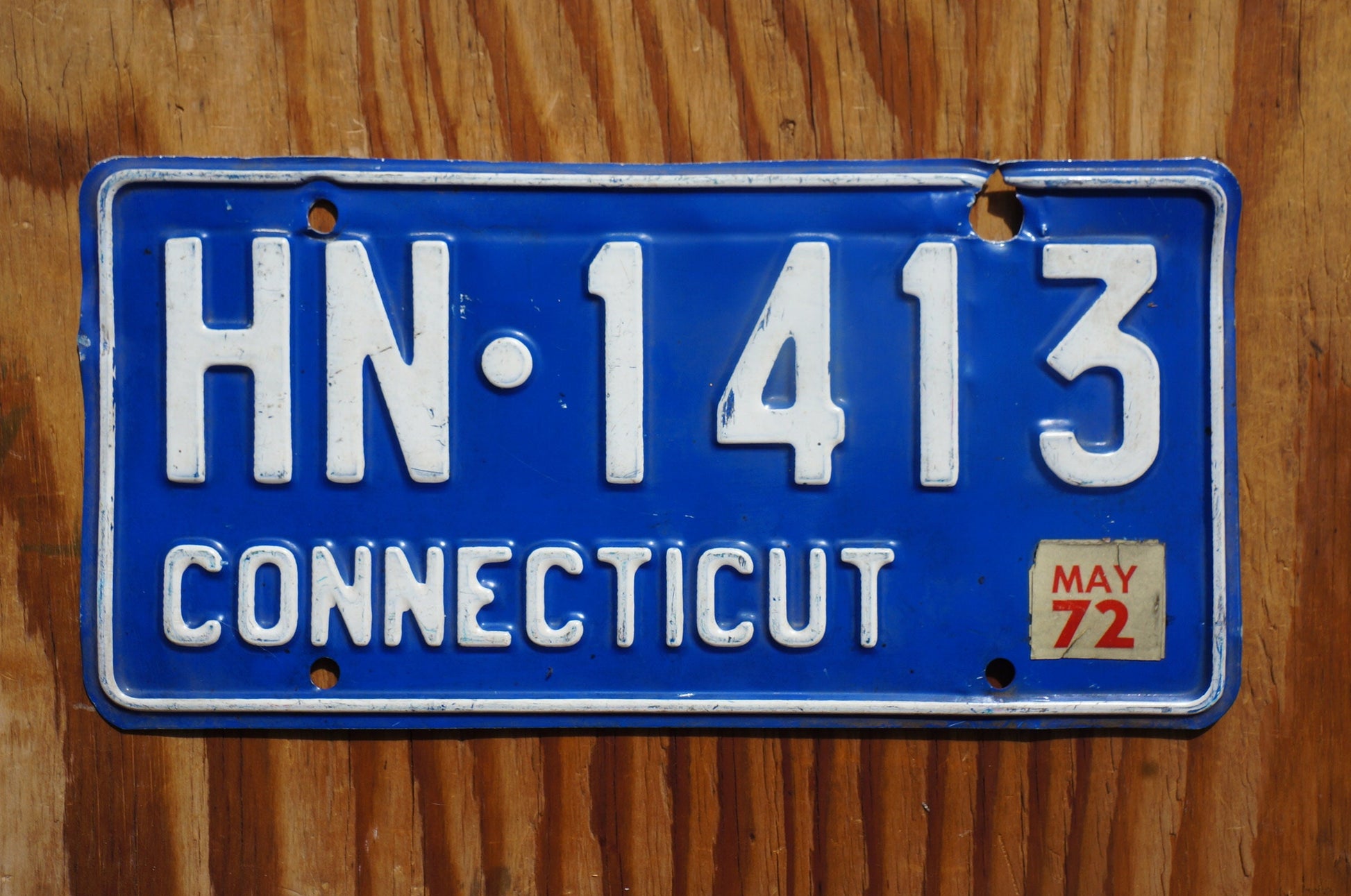 1972 Connecticut Blue Vintage License Plate # NH - 1413