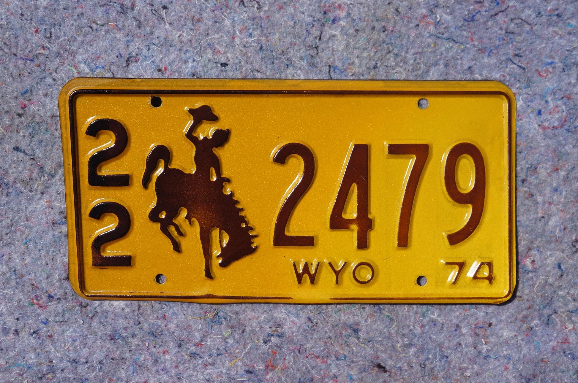1974 Wyoming Teton County License Plate # 22 - 2479 - Cowboy & Horse - Yellowstone