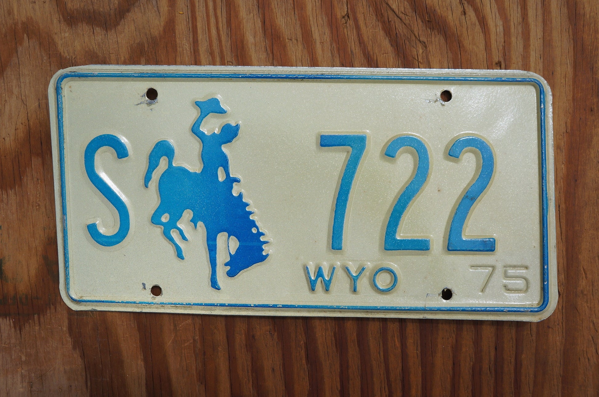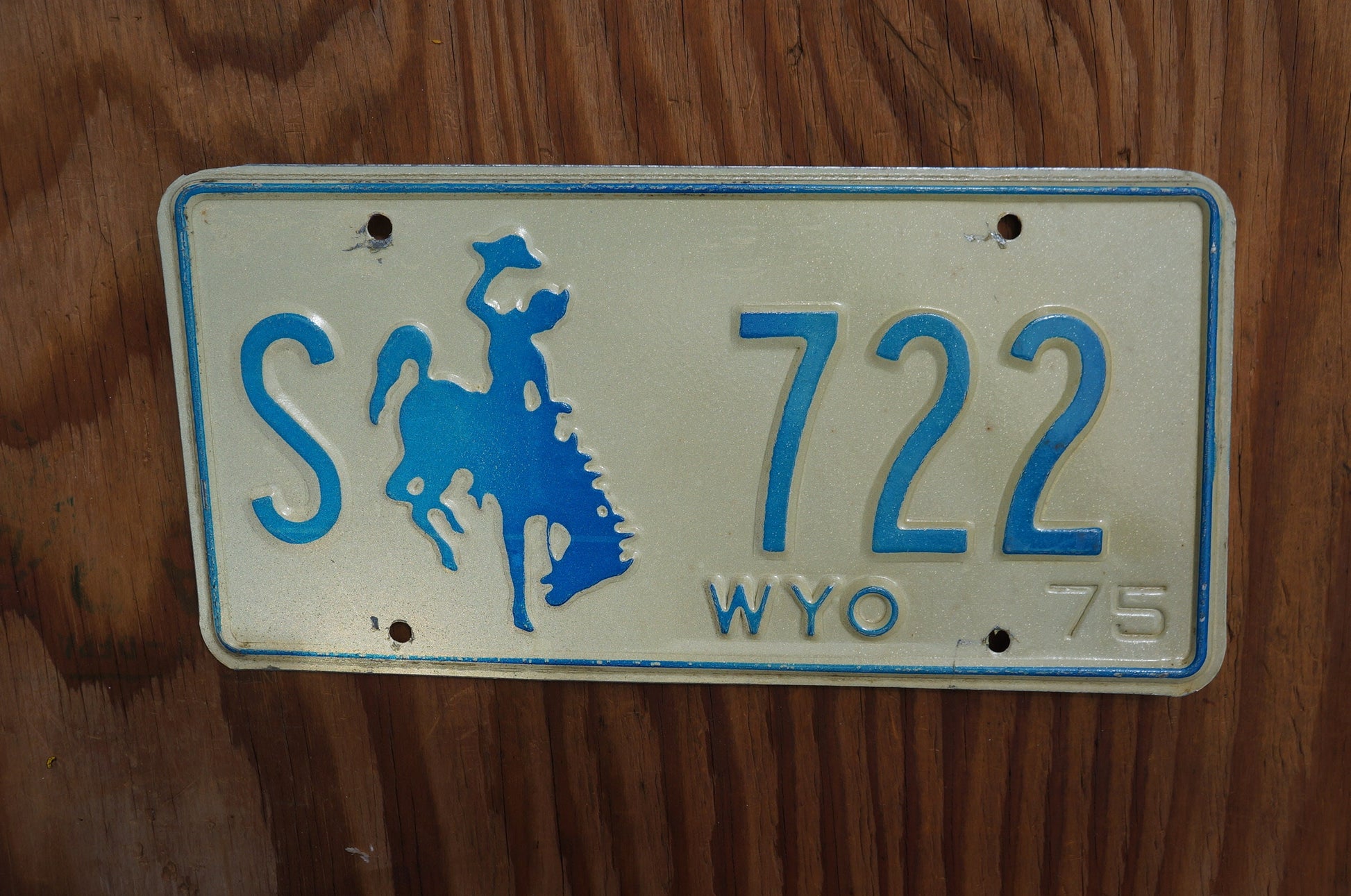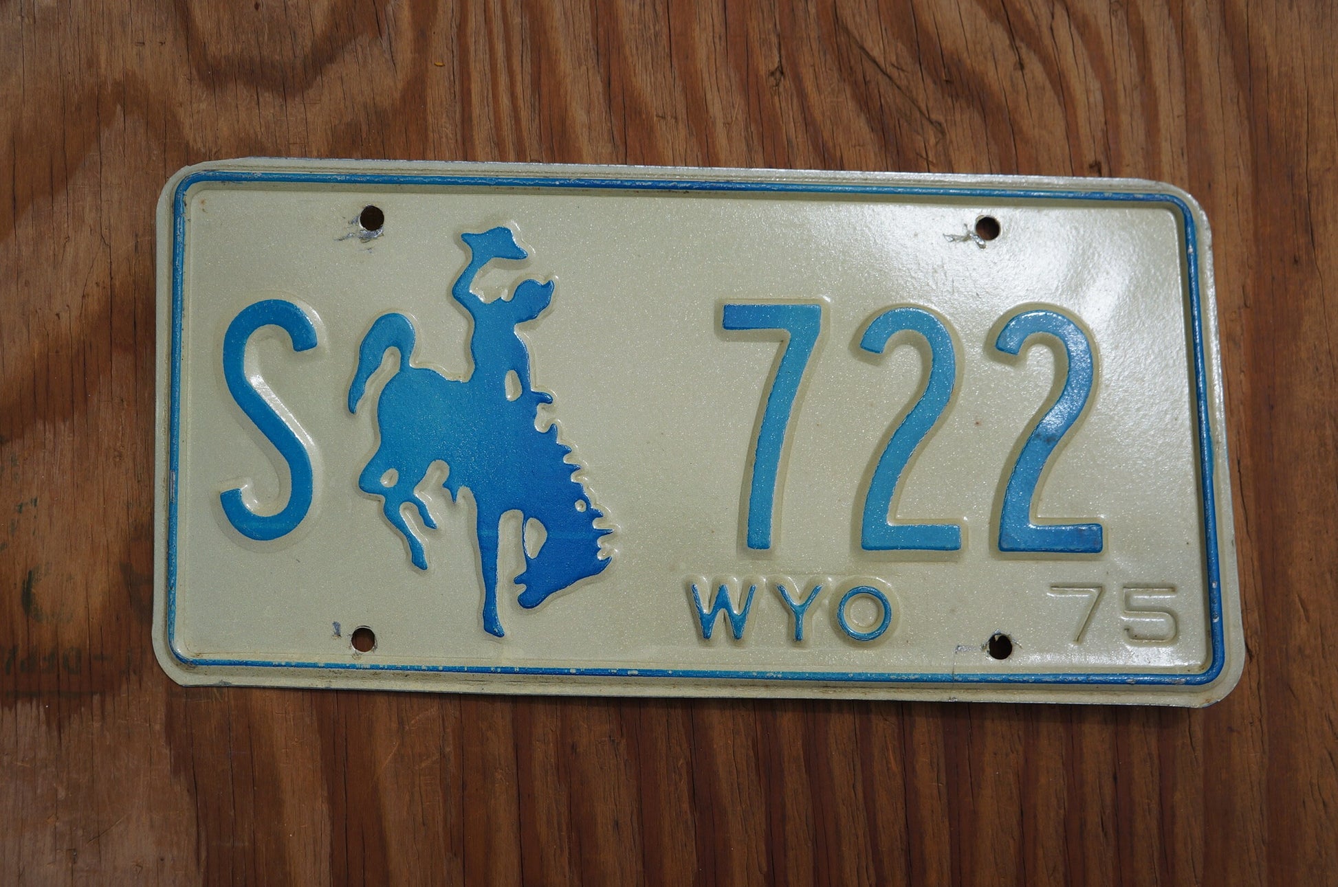 1975 Wyoming STATE OWNED VEHICLE Blue Rodeo Cowboy Horse License Plate
