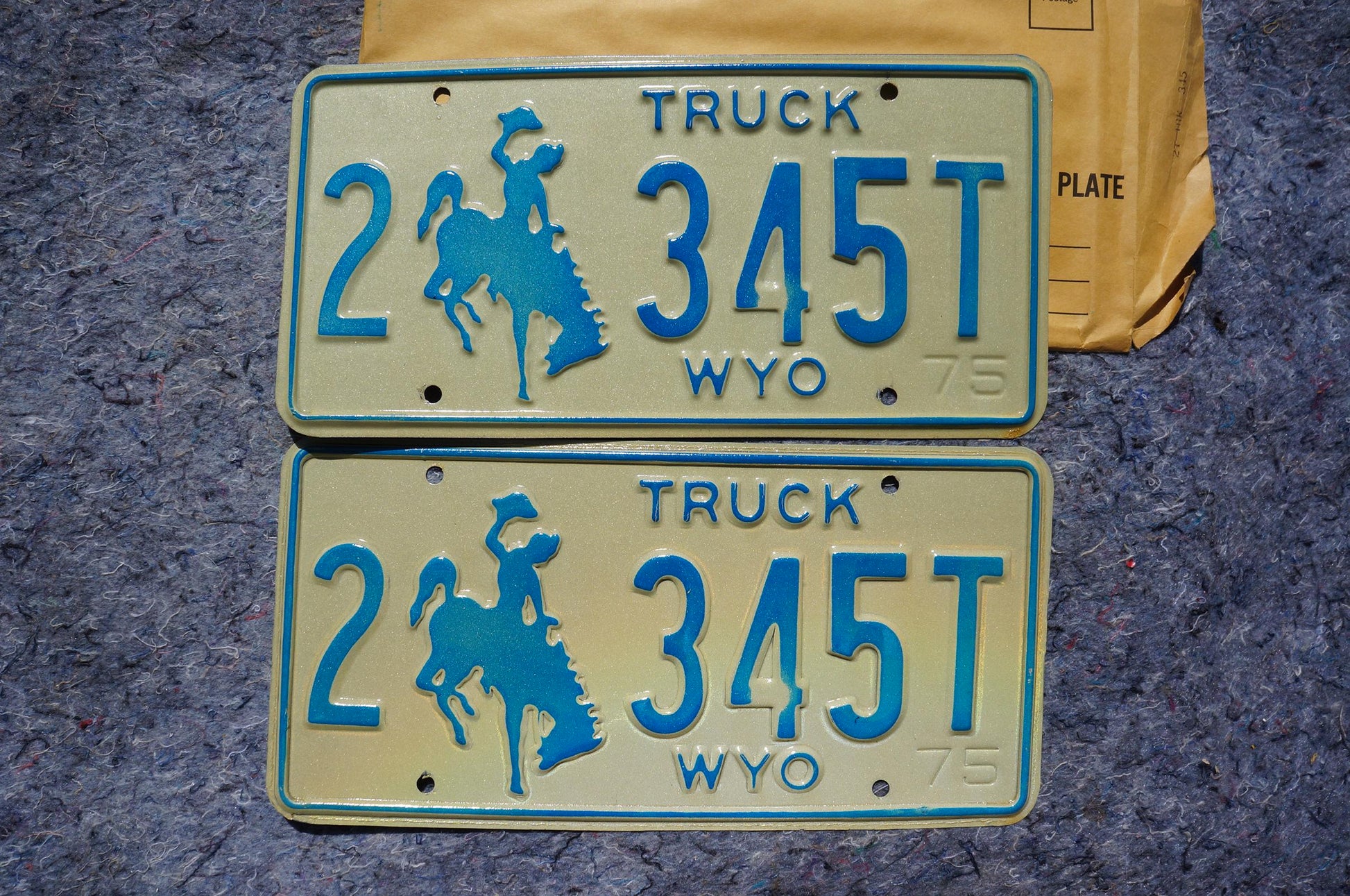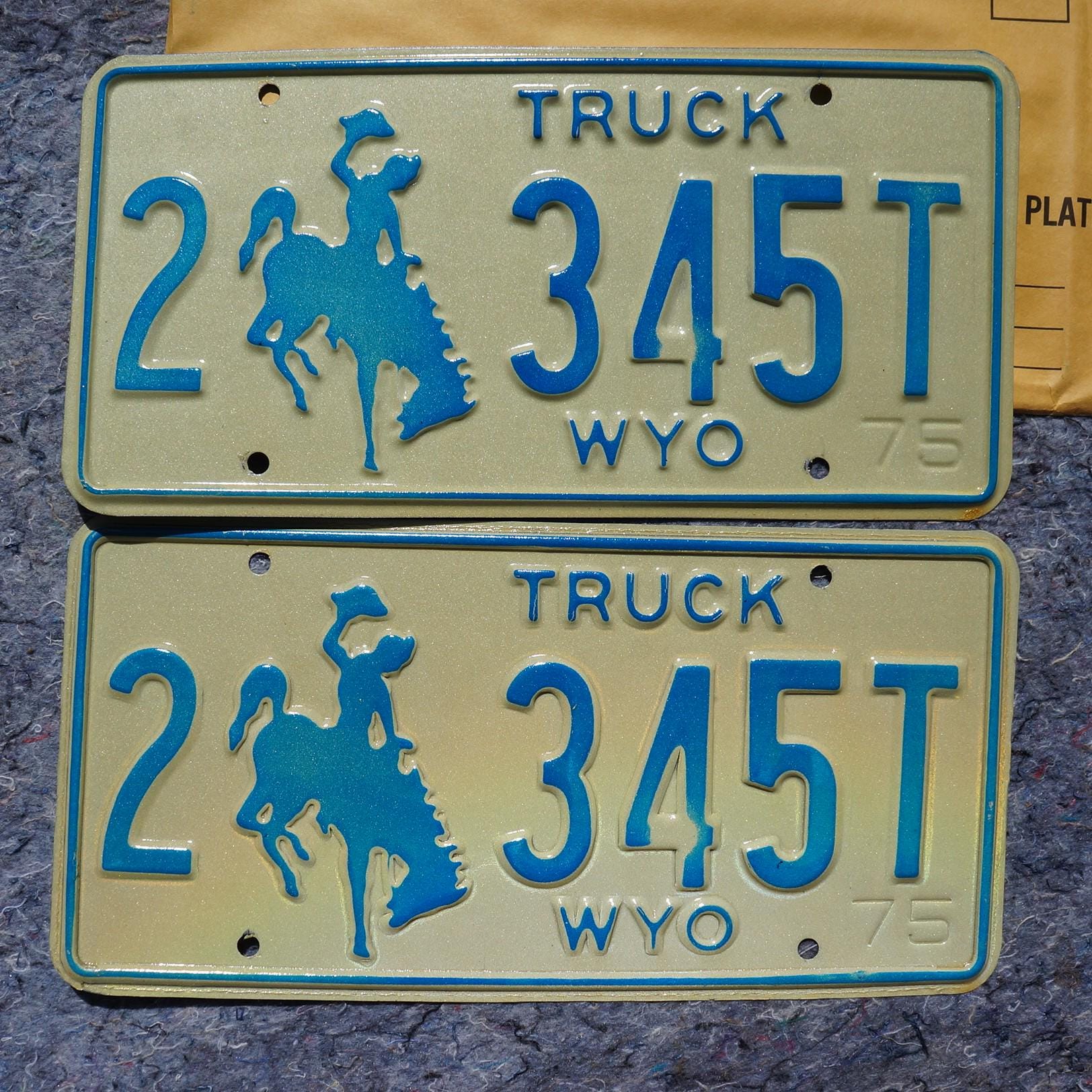 1975 Wyoming Truck Cowboy Horse Blue License Plate PAIR / SET # 2 - 345 T