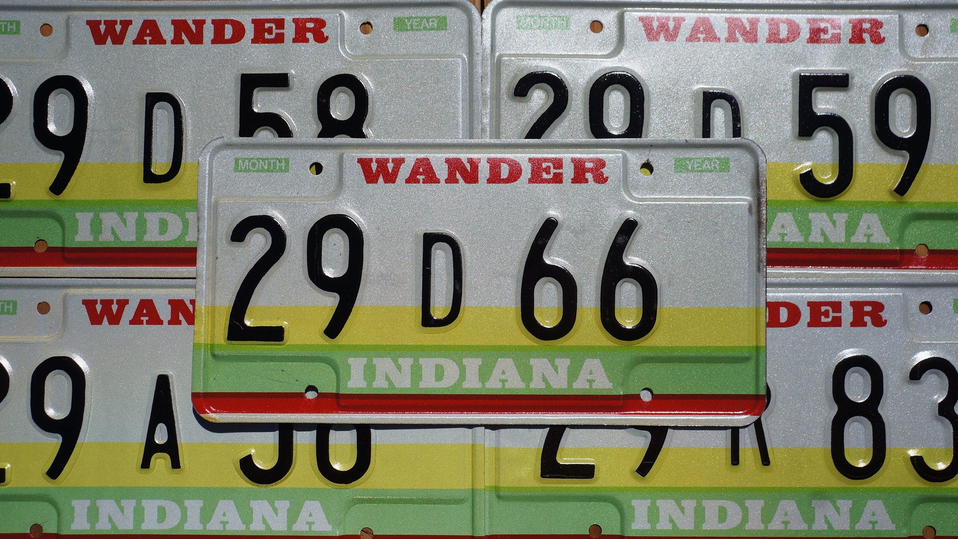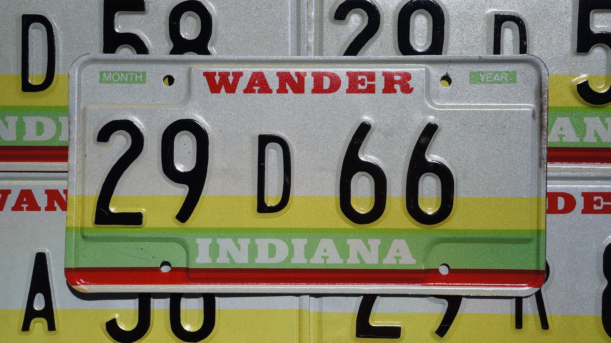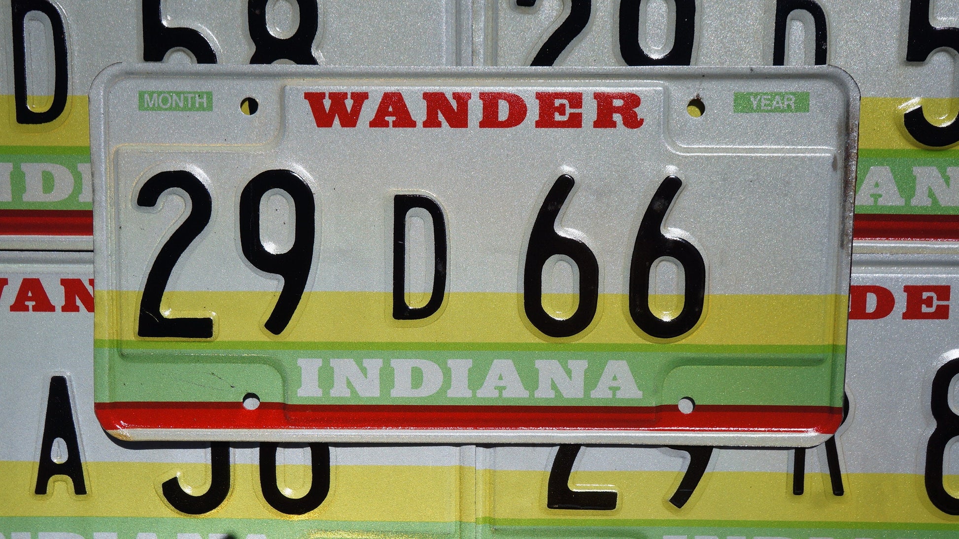 1980s Indiana Vintage License Plate: Wander Yellow Green Red Stripes