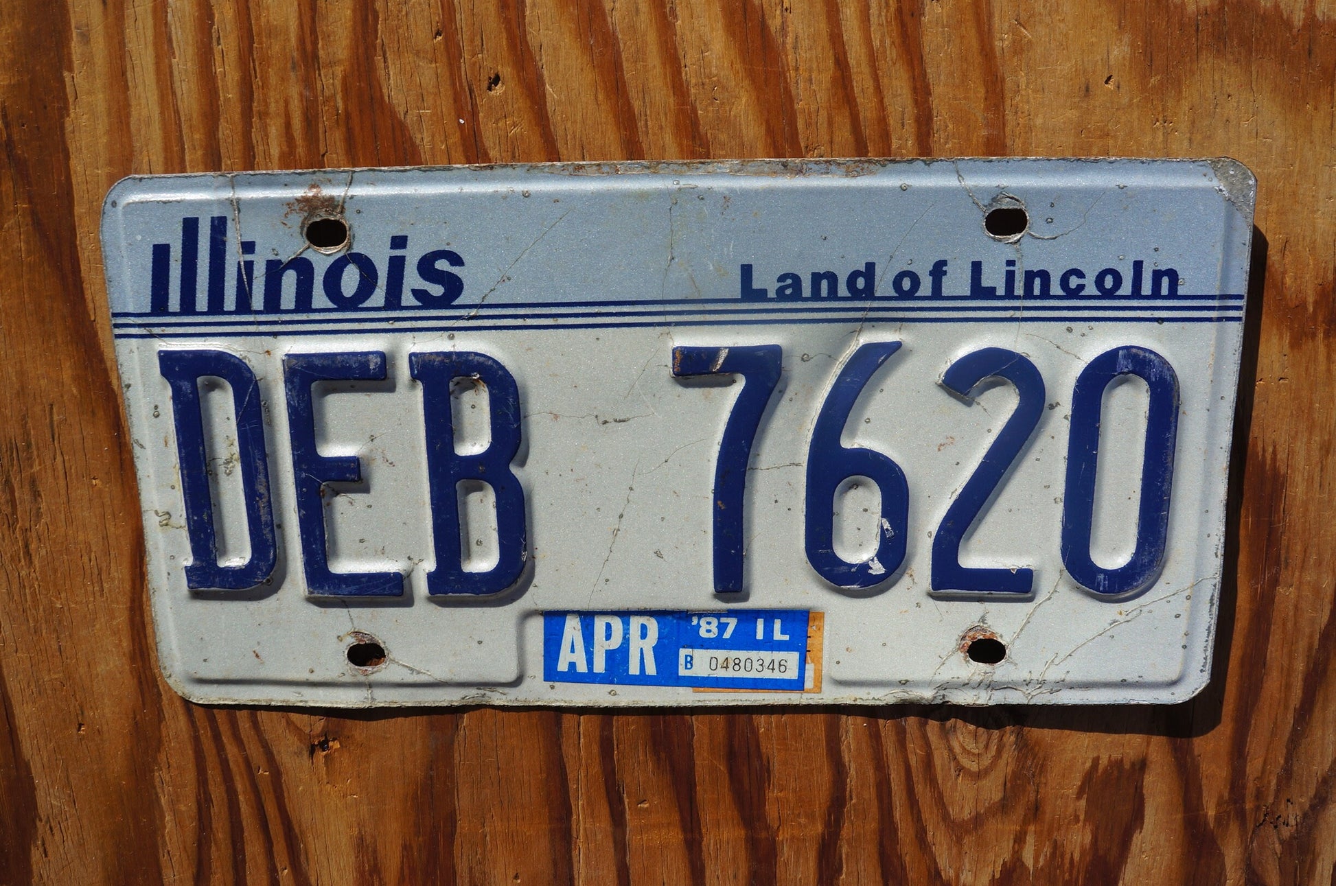 1987 Illinois White License Plate - Land of Lincoln # DEB 7620