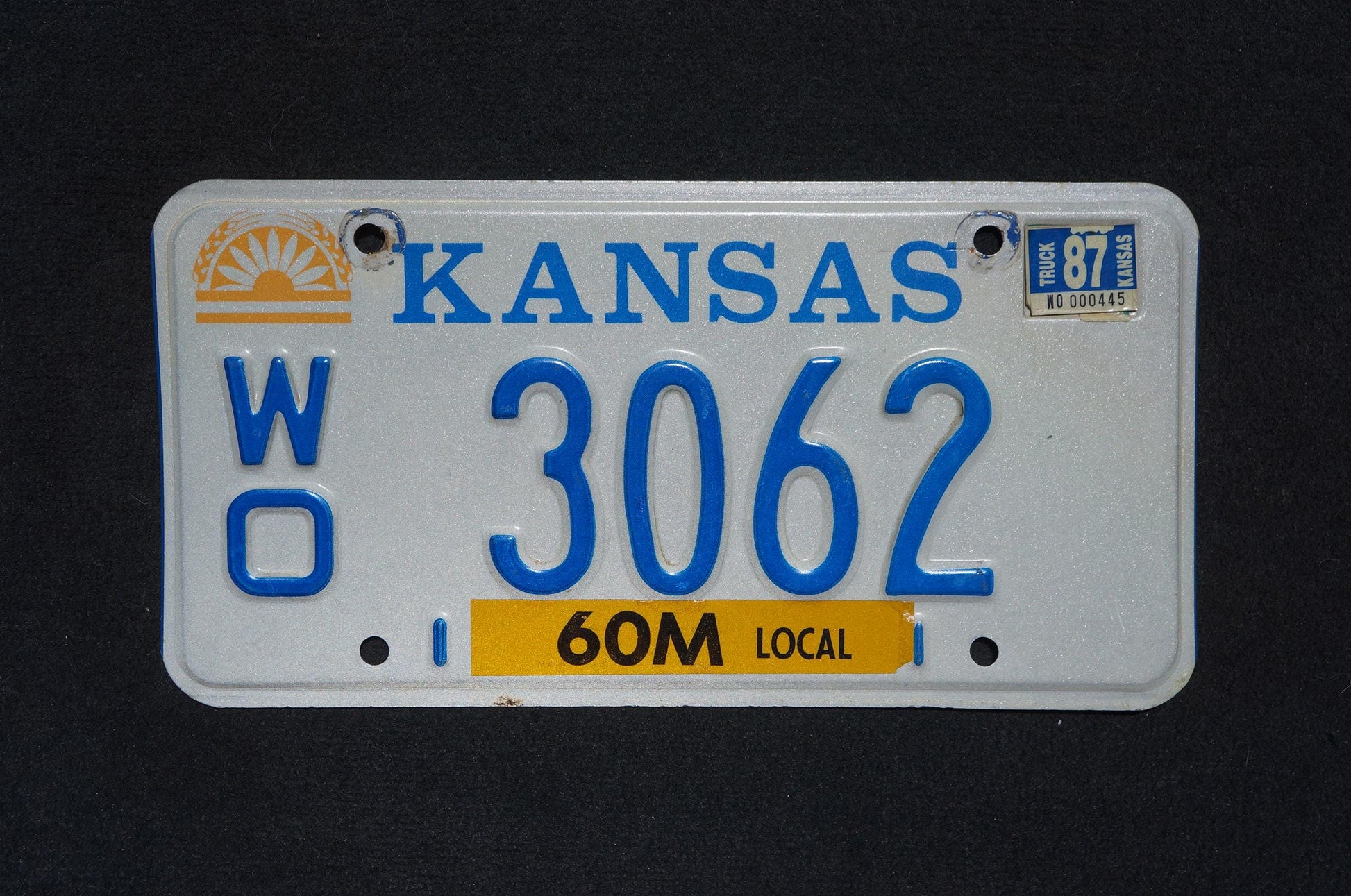 1987 Kansas Vintage License Plate # 3062
