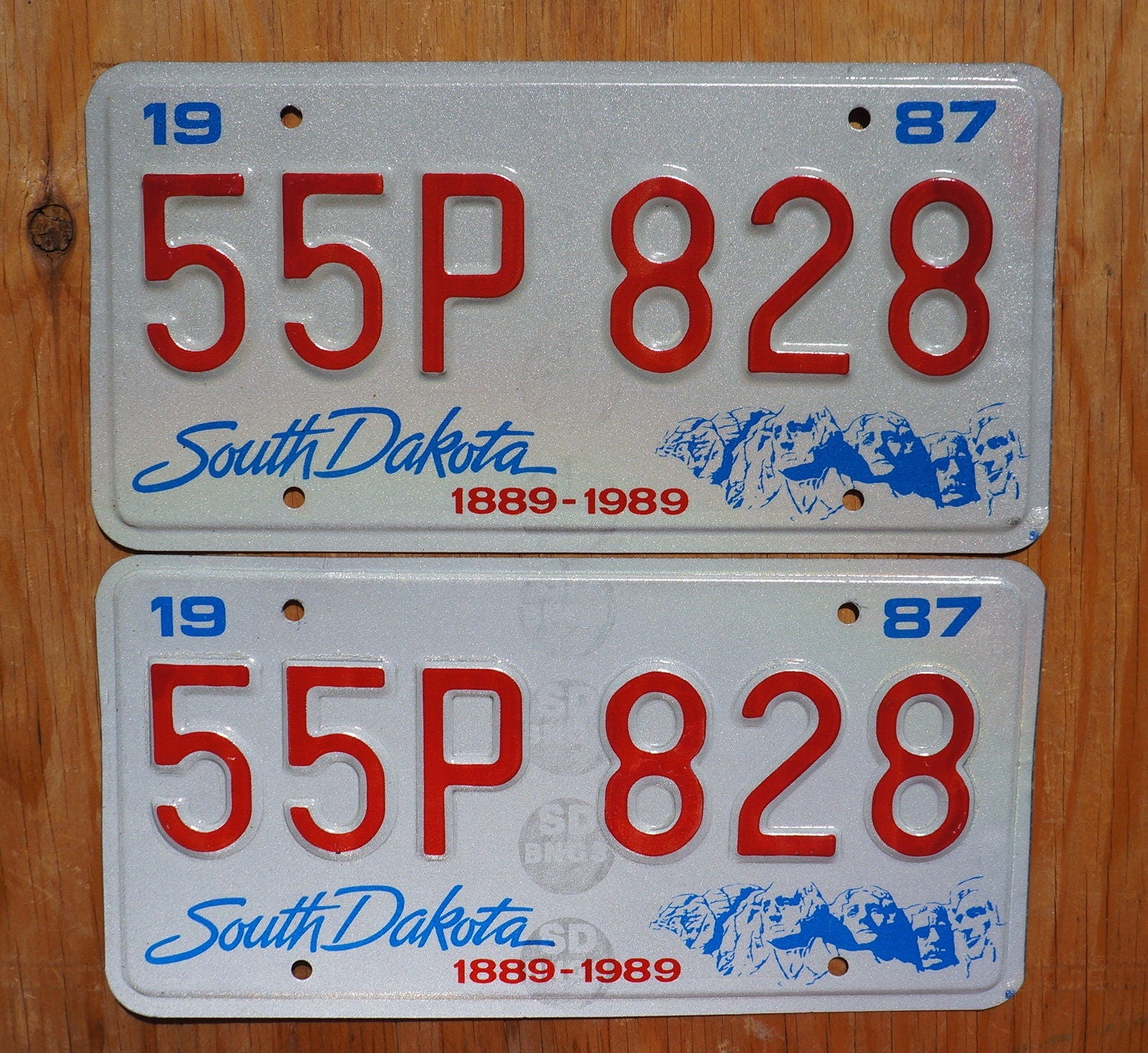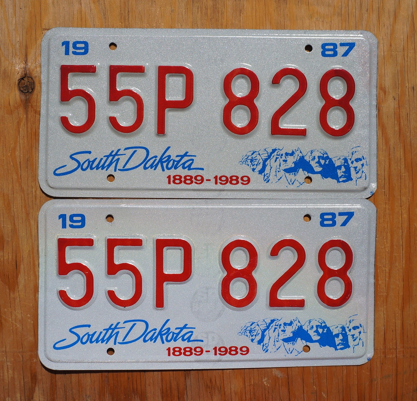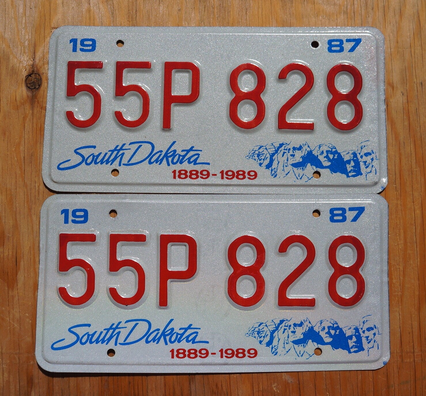 1987 South Dakota Centennial Mt Rushmore License Plate Pair - Unused Original