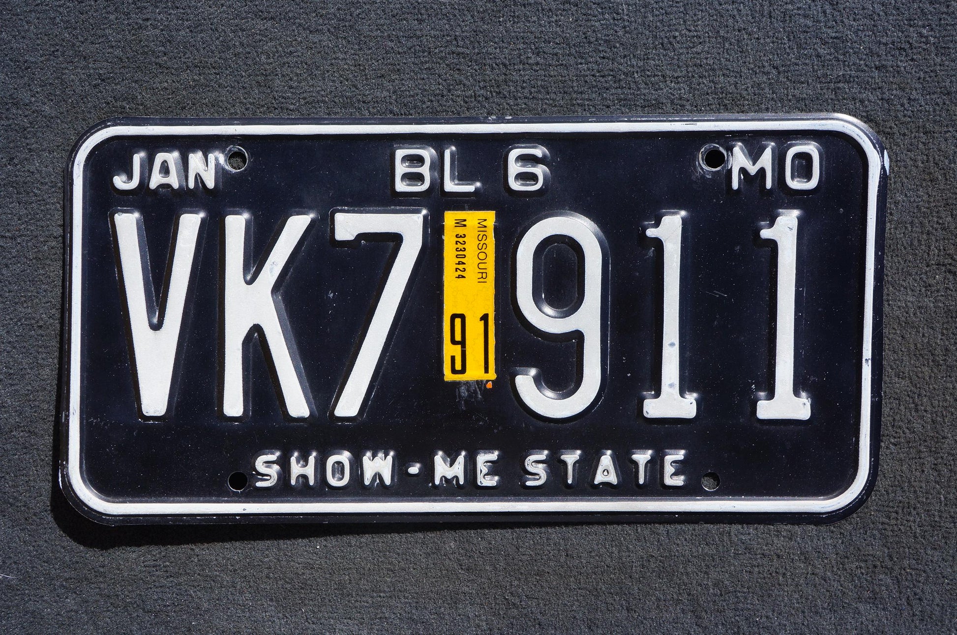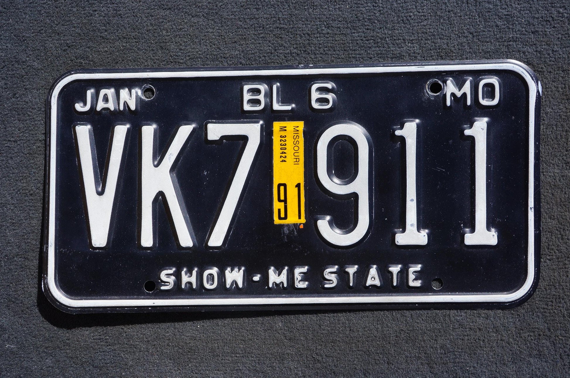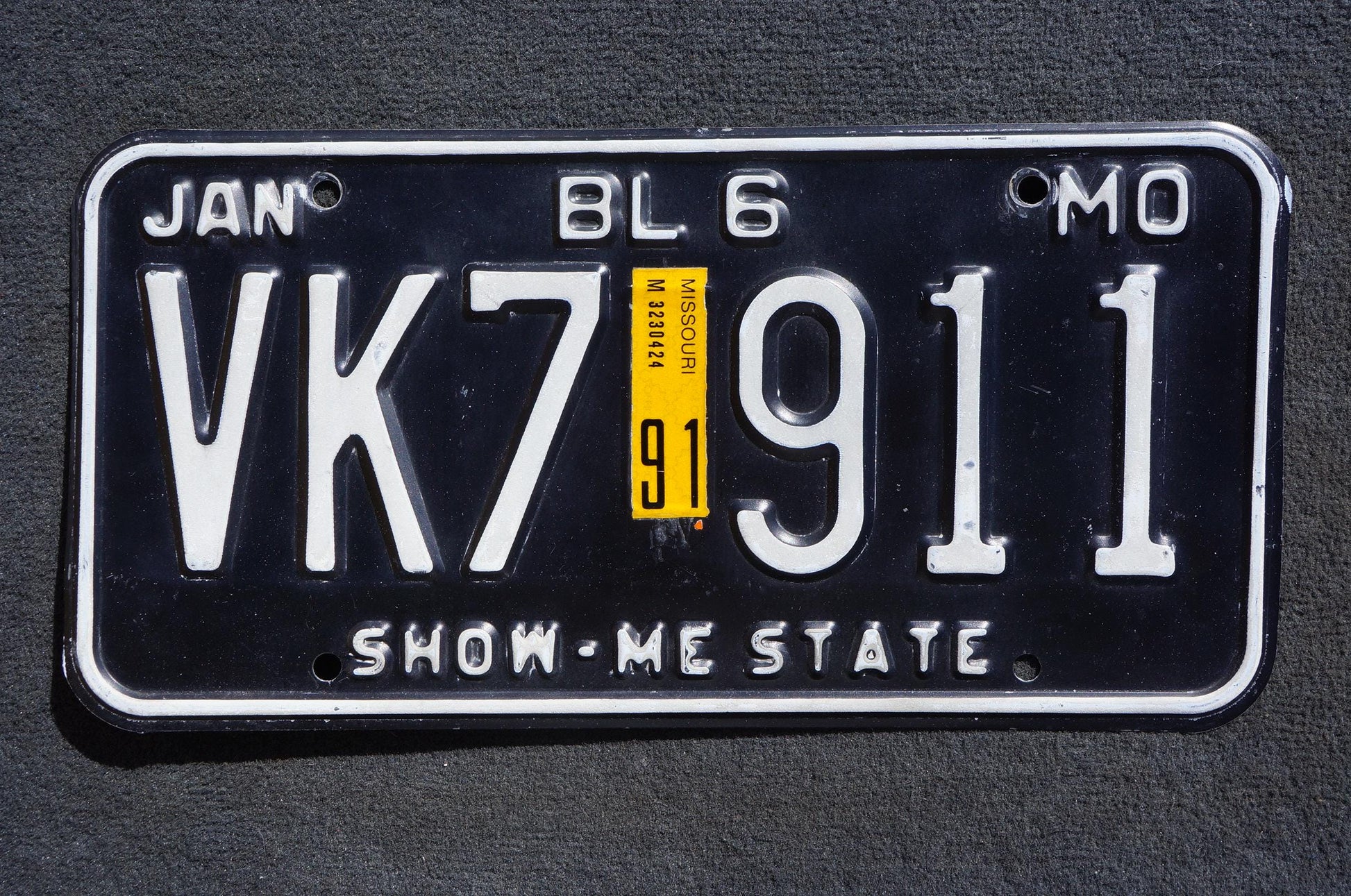 1991 Missouri Black Vintage License Plate # VK7 911 Show-me-state