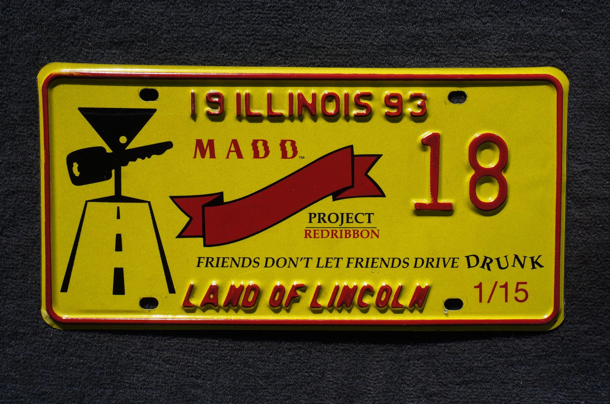1993 Illinois MADD Project Red Ribbon License Plate # 18