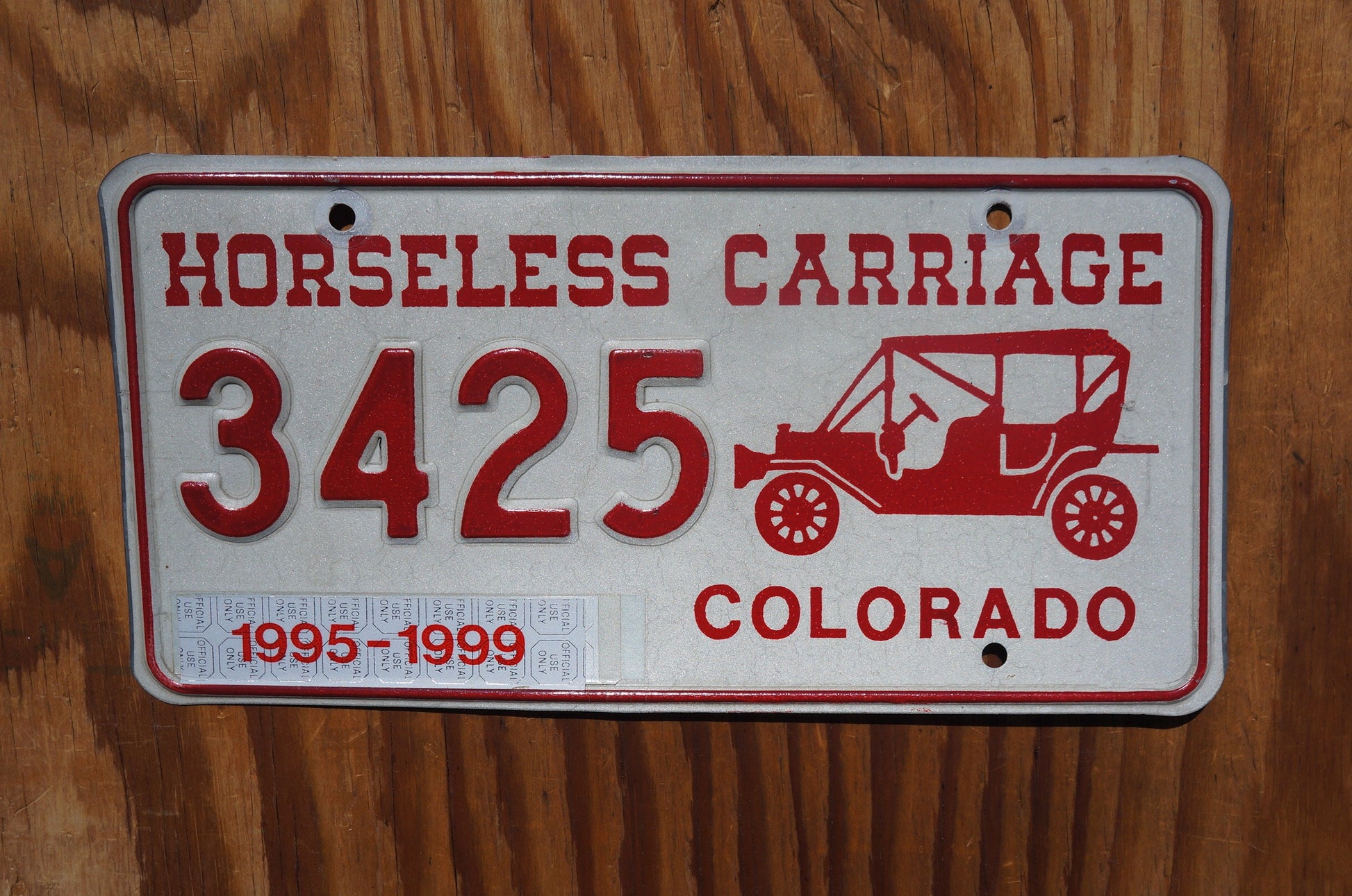 1995 1996 1997 1998 1999 Colorado HORSELESS CARRIAGE License Plate Antique Auto