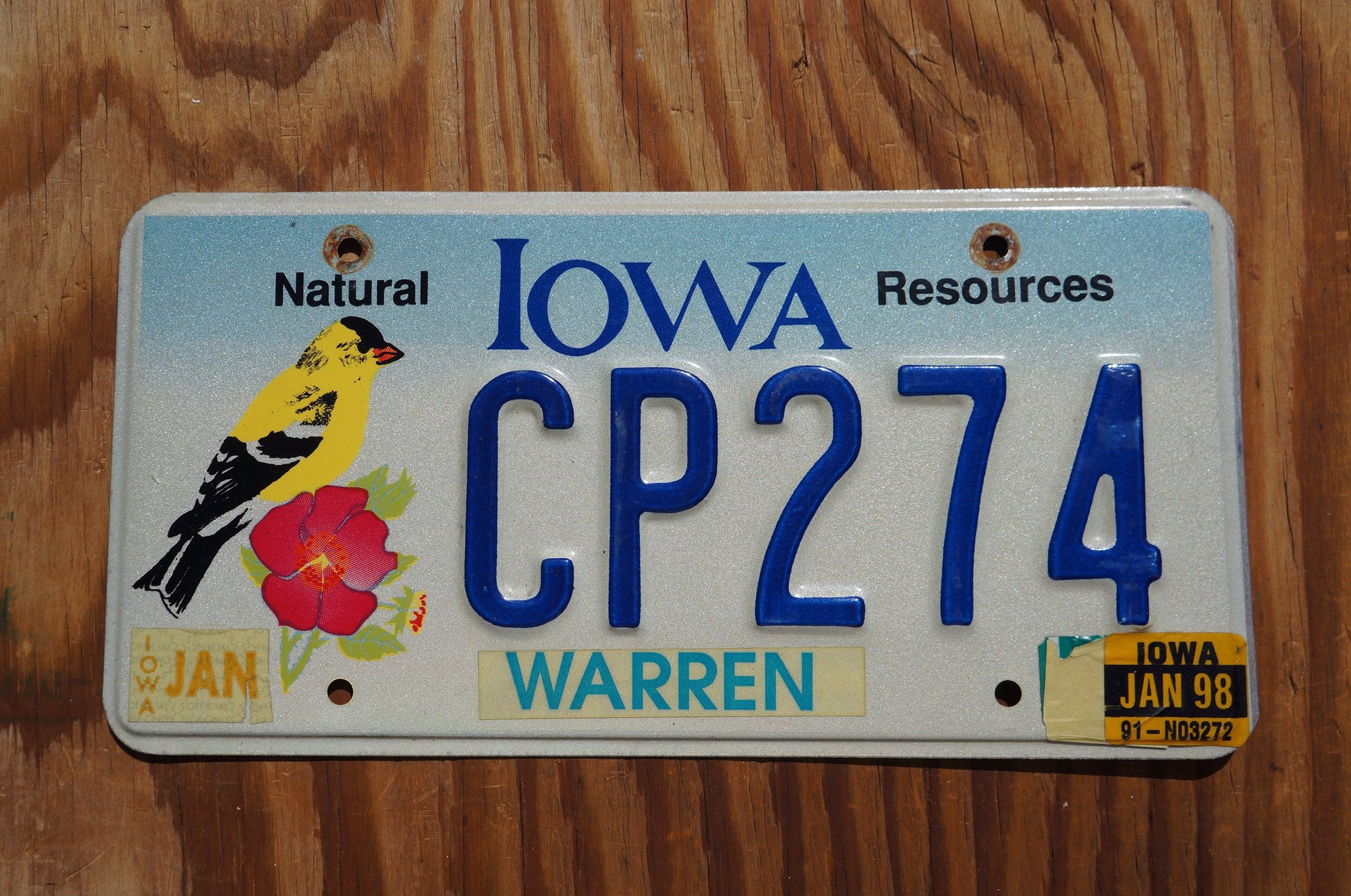 1998 Iowa NATURAL RESOURCES Graphic License Plate - Yellow Bird Red Flower