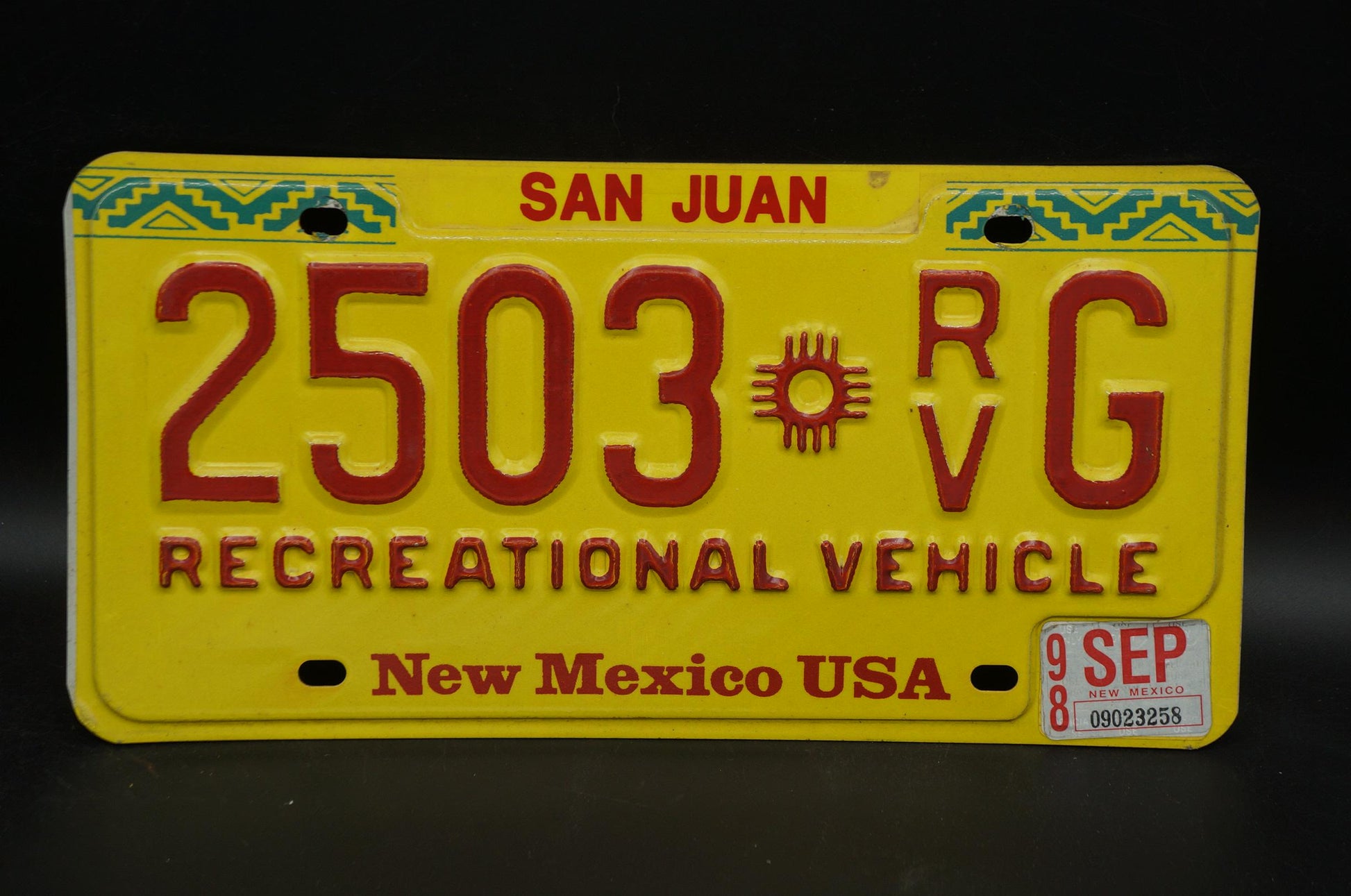 1998 New Mexico Recreational Vehicle RV Yellow License Plate
