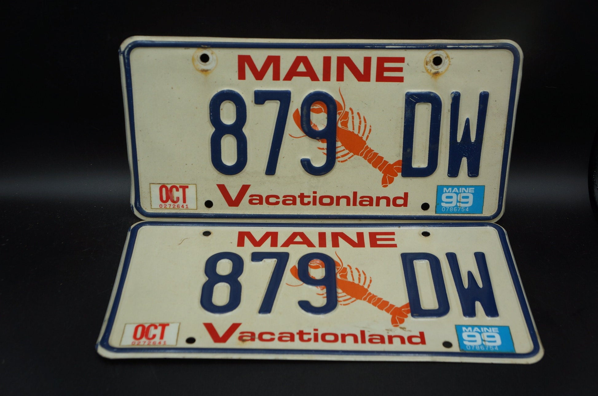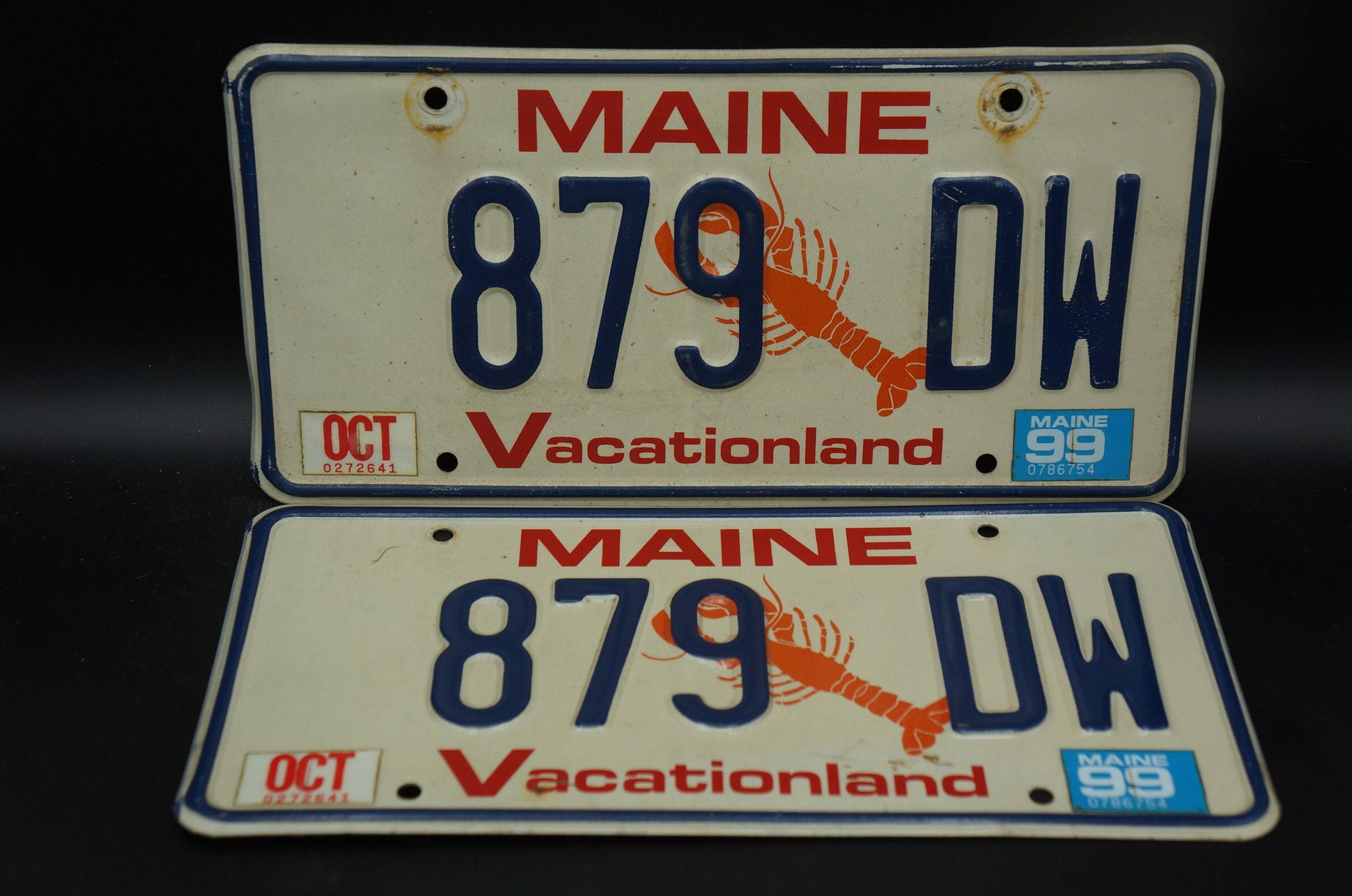 1999 Maine LOBSTER License Plate PAIR / SET - Vacationland