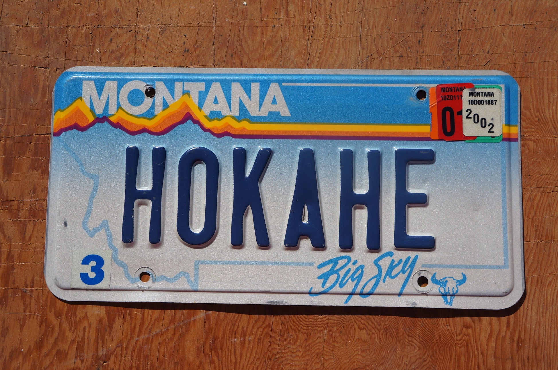 2002 Montana Vanity Big Sky Blue License Plate # HOKAHE
