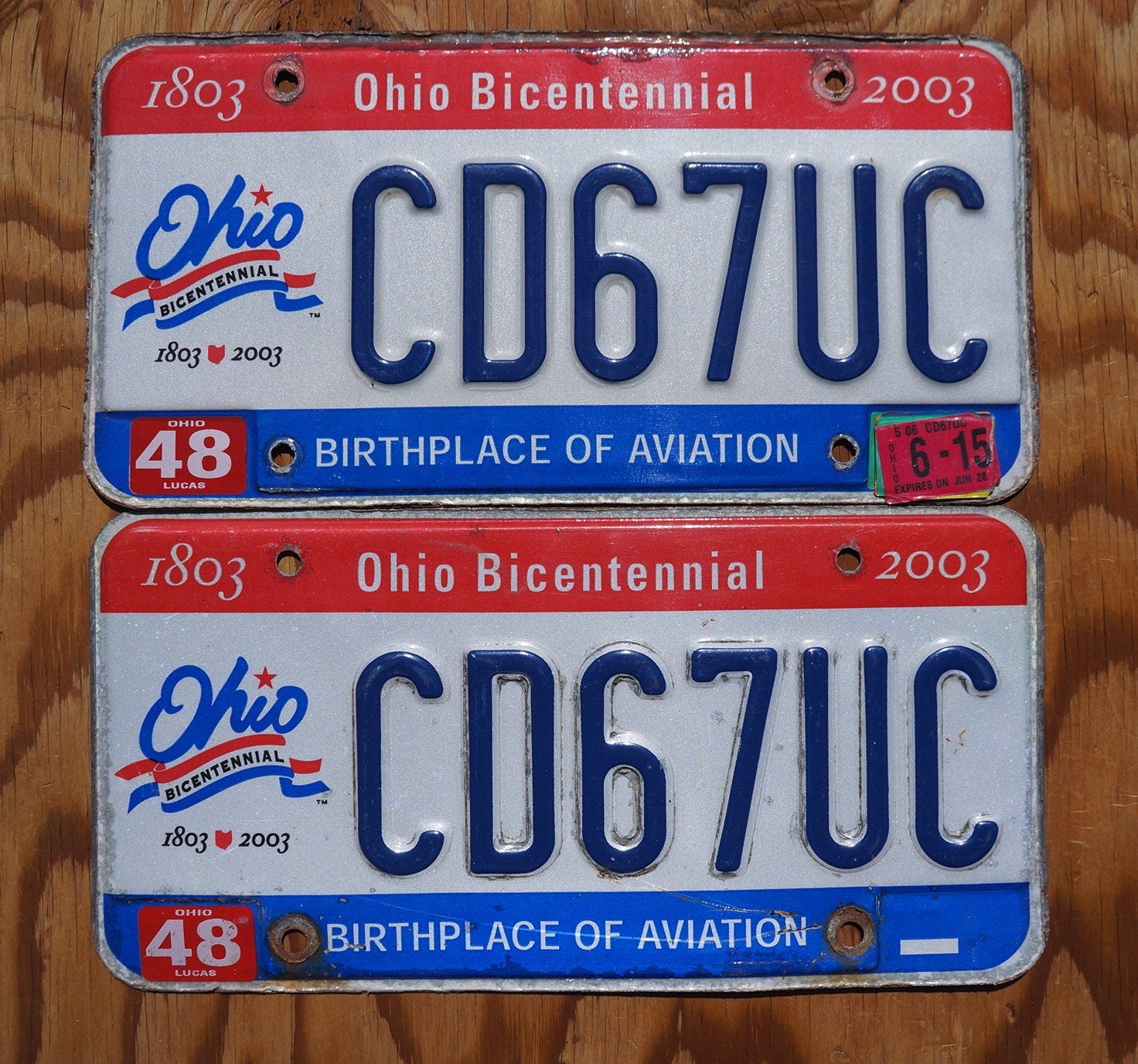 2003 Ohio BICENTENNIAL License Plate Pair / Set - Red White Blue