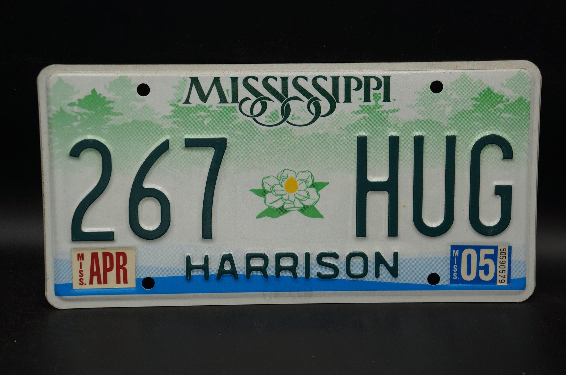 2005 Mississippi Embossed Green White Magnolia Flower License Plate # 267 HUG