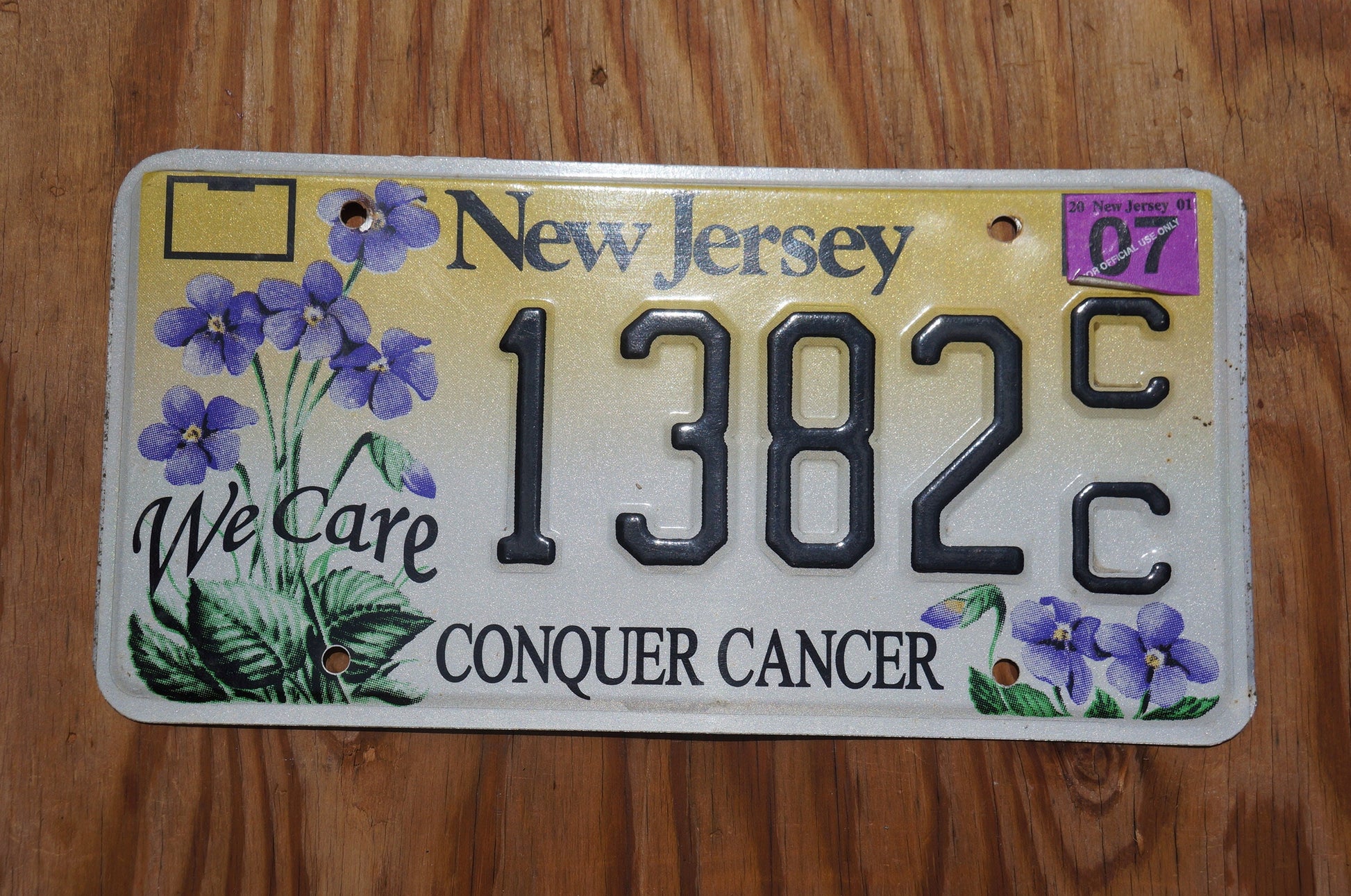 2007 New Jersey CONQUER CANCER Graphic Purple Flowers License Plate - We Care
