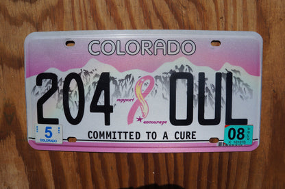 2008 Colorado PINK RIBBON - Committed to a Cure - Women Heath - Cancer - License Plate