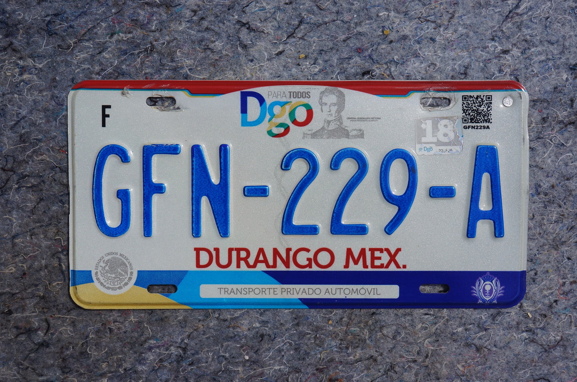 This listing is for one 2018 DURANGO MEXICO License Plate.