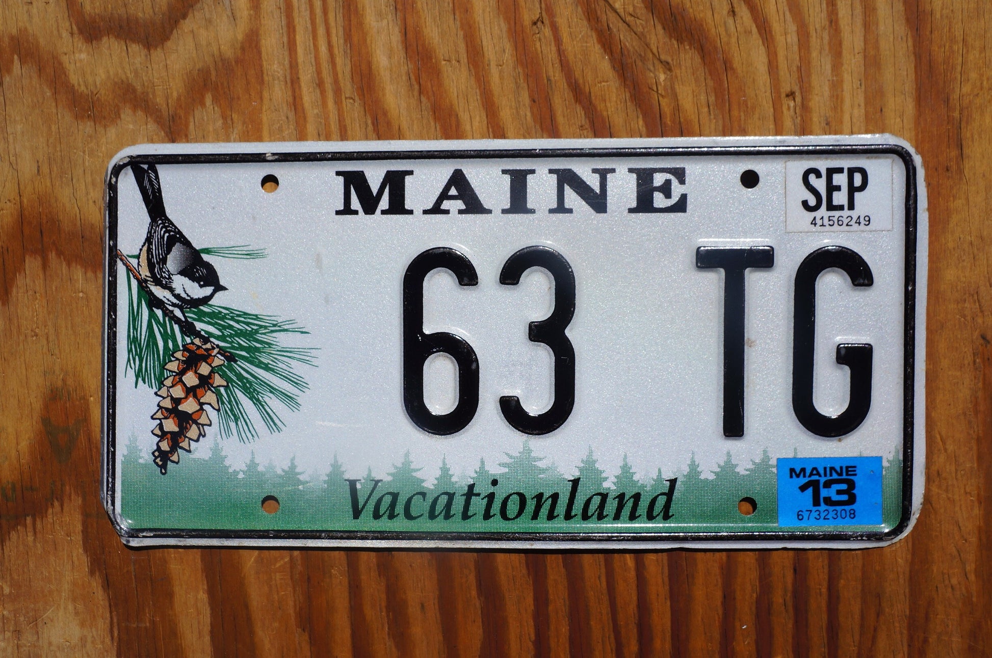 2013 Maine License Plate BIRD Pine Cone # 63 TG - Vacationland