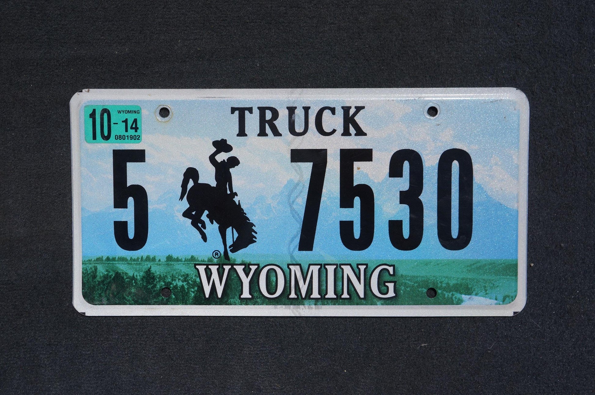 2014 Wyoming Truck Graphic Rodeo Cowboy & Horse Bucking Bronco Blue License Plate