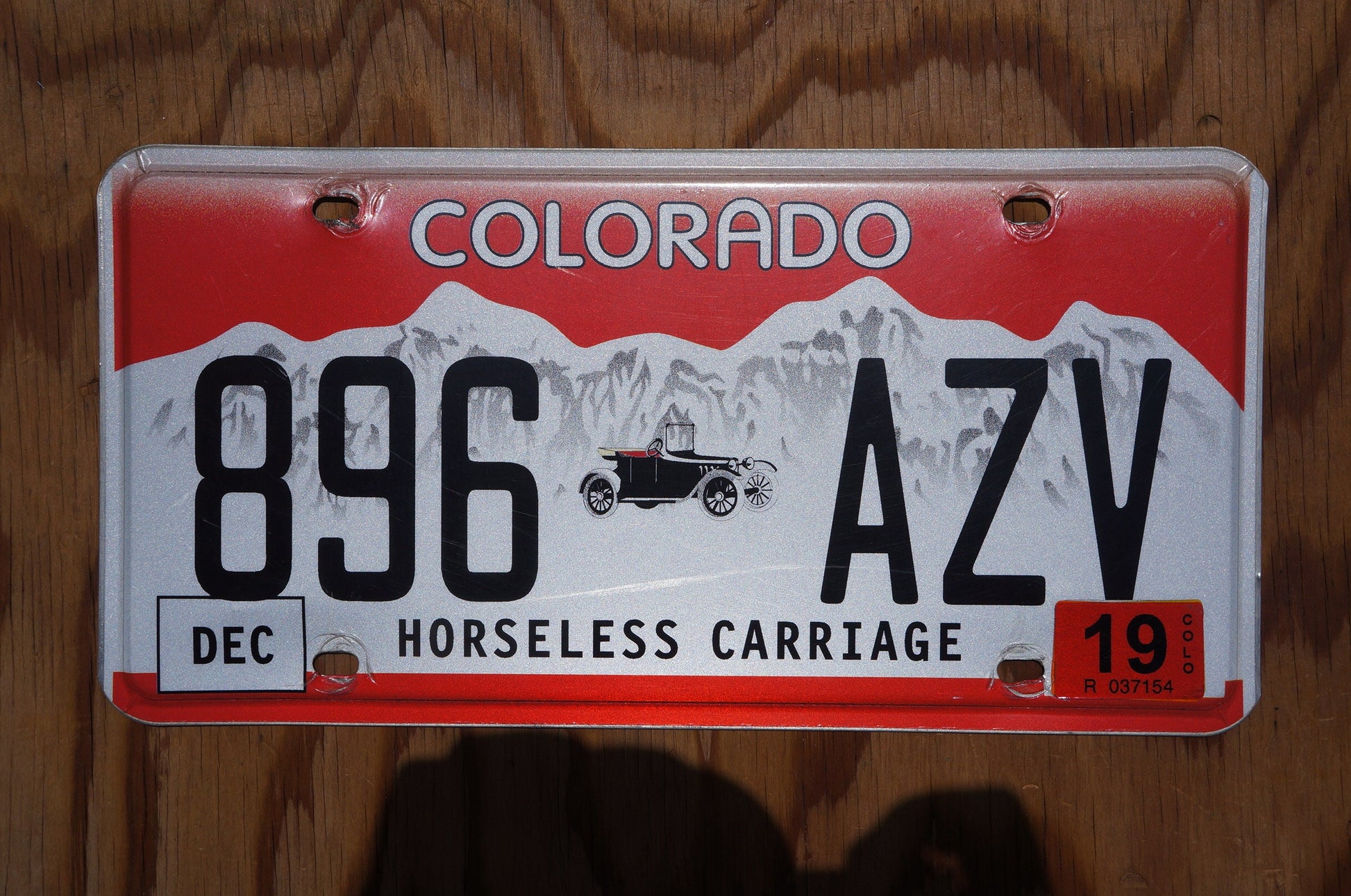 2019 Colorado HORSELESS CARRIAGE Red License Plate