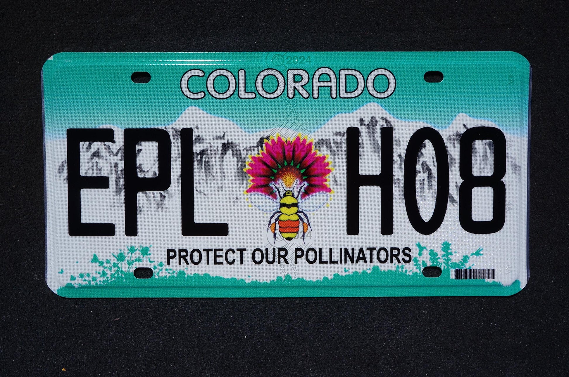 2024 Colorado PROTECT OUR POLLINATORS License Plate - Bee Flower New Design