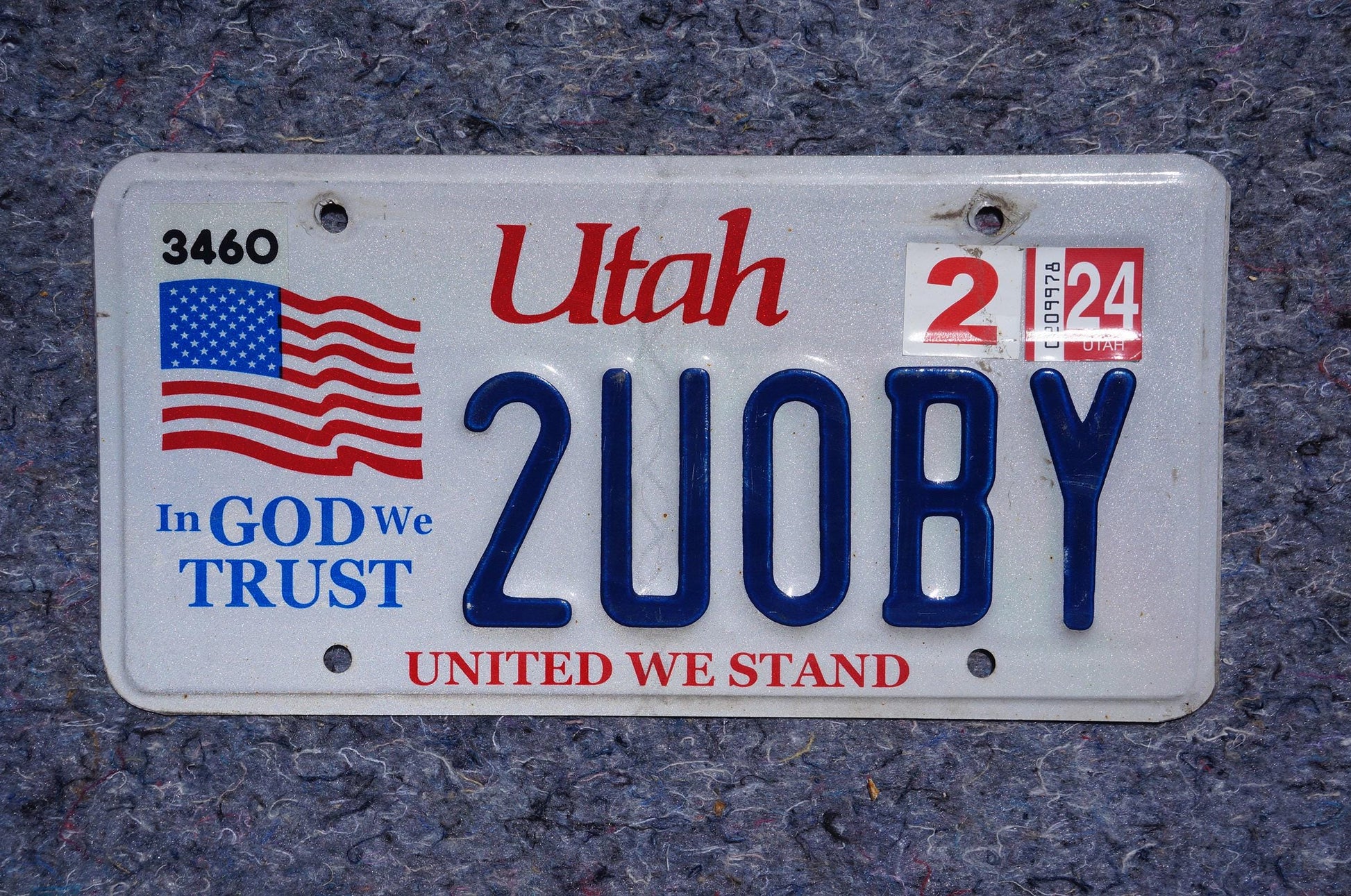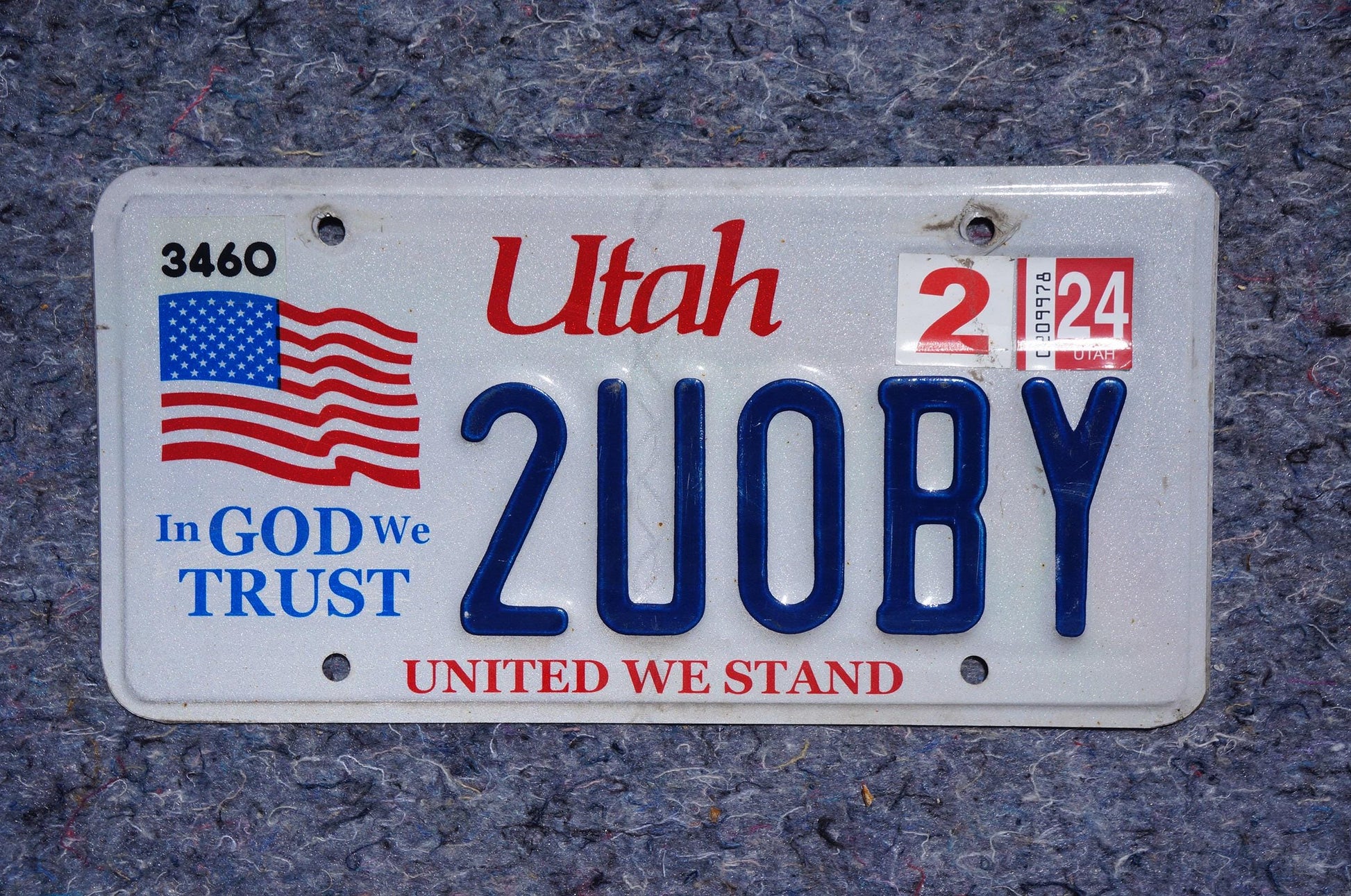 2024 Utah American Flag License Plate # 2UOBY - In God We Trust - United We Stand