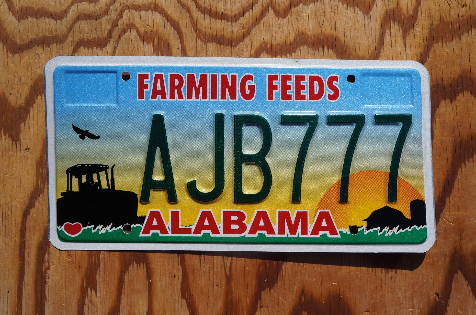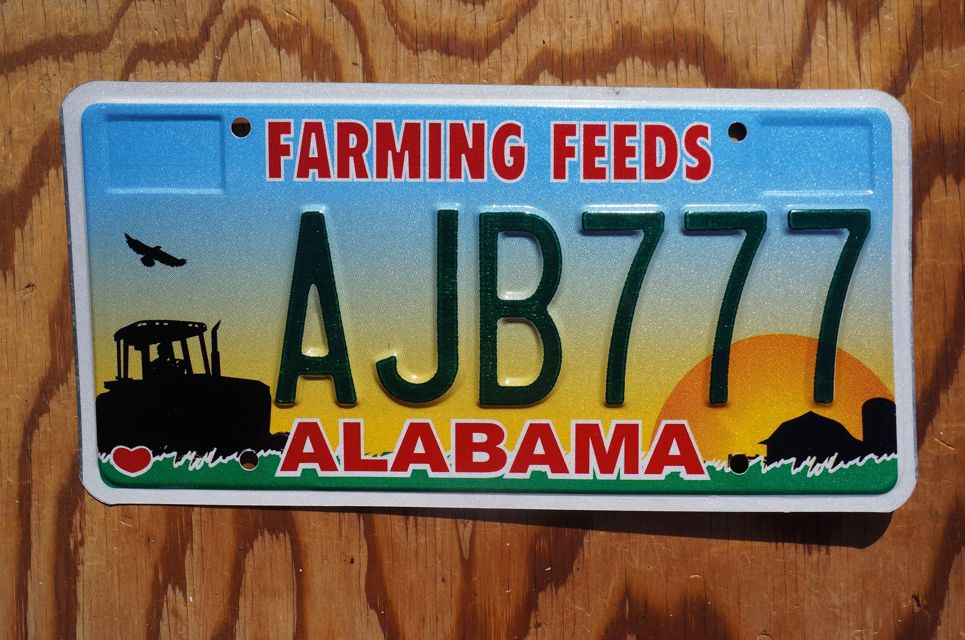 Alabama FARMING FEEDS Colorful Graphic License Plate # AJB 777