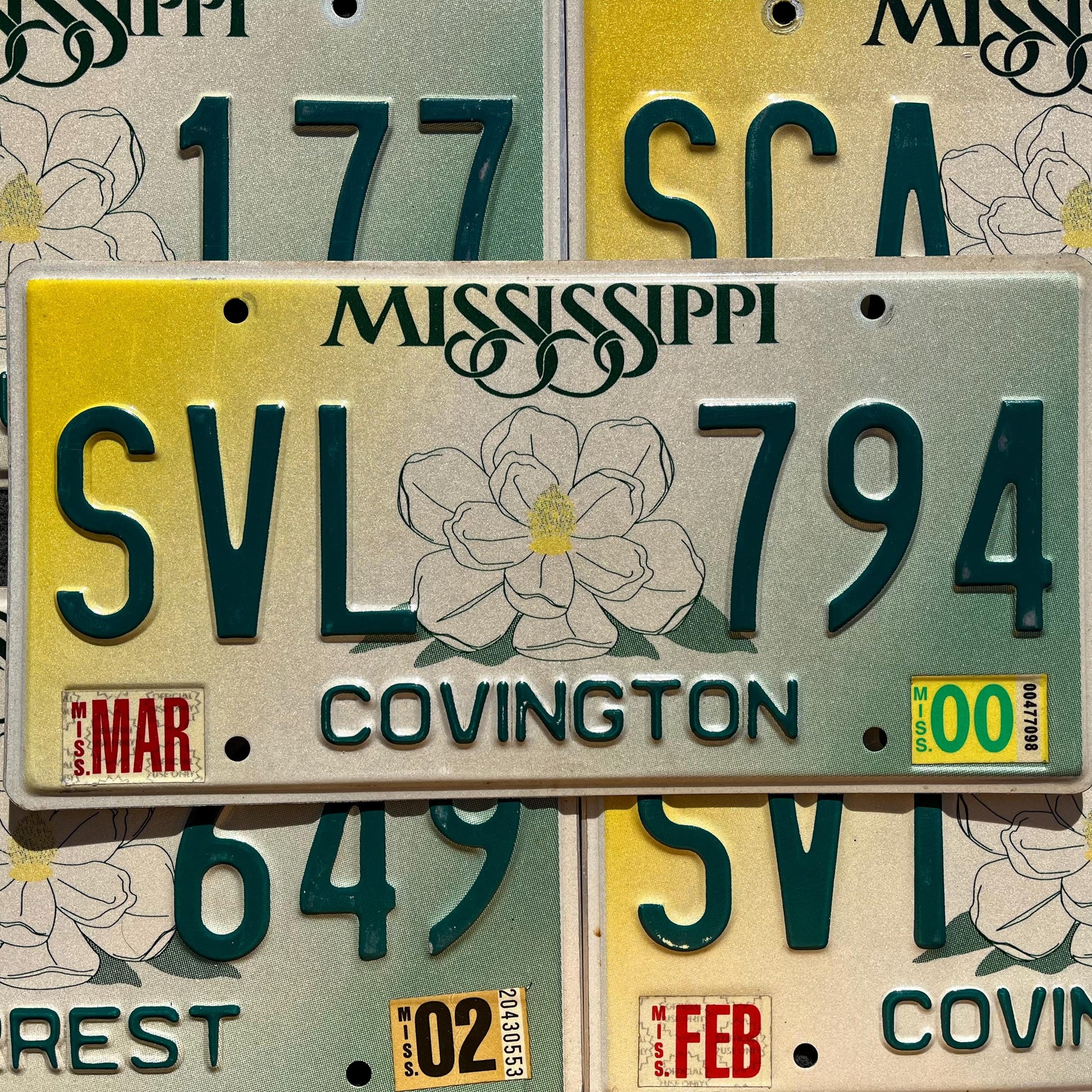 Authentic Mississippi Large Magnolia Flower Yellow Green Graphic License Plate Tags Good Condition