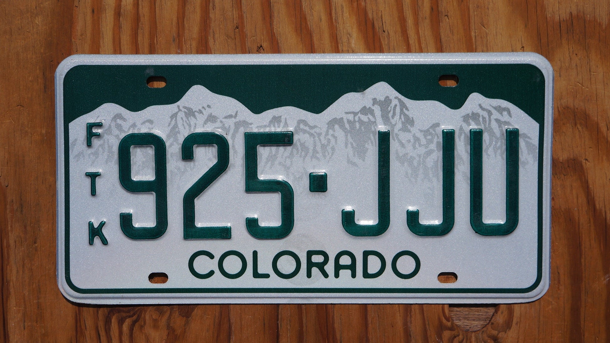 Colorado FARM TRUCK License Plate Snow Mountains Green Letters # 925 - JJU