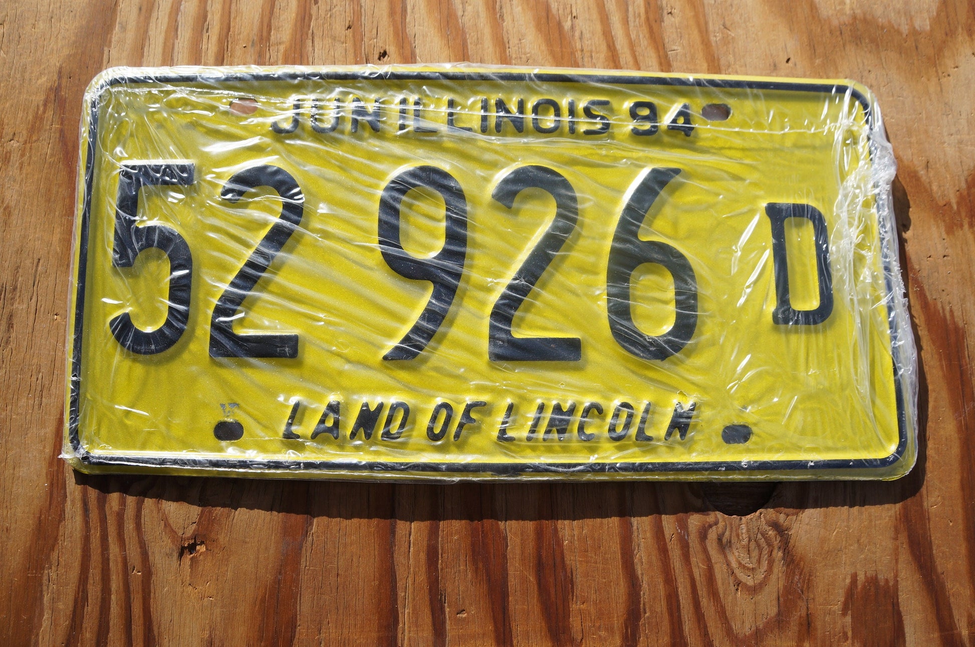 Mint 1994 Illinois Yellow License Plate Set / Pair # 52926 D - Unissued with original packaging