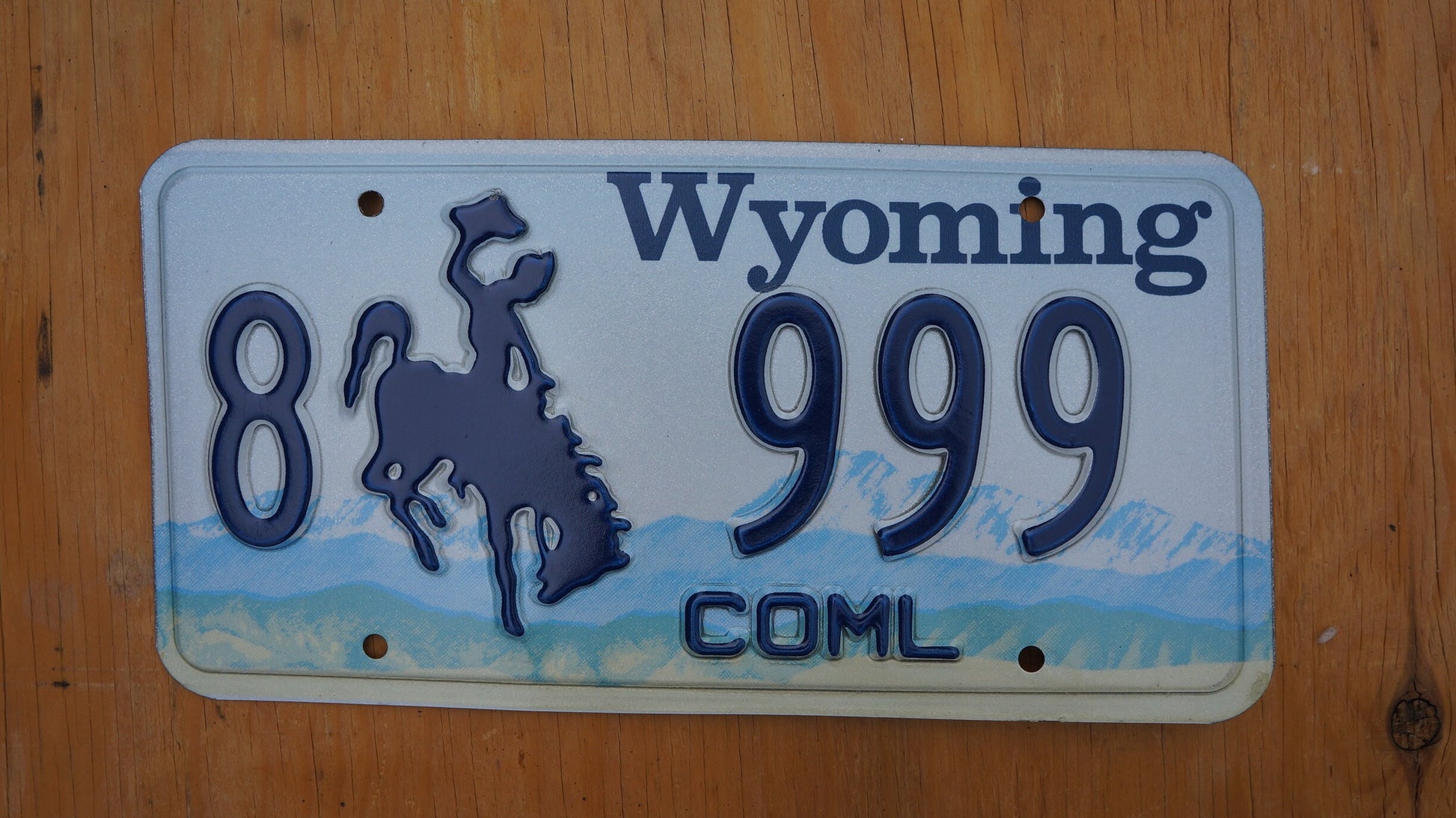 Mint Wyoming Blue License Plates Cowboy Horse # 999
