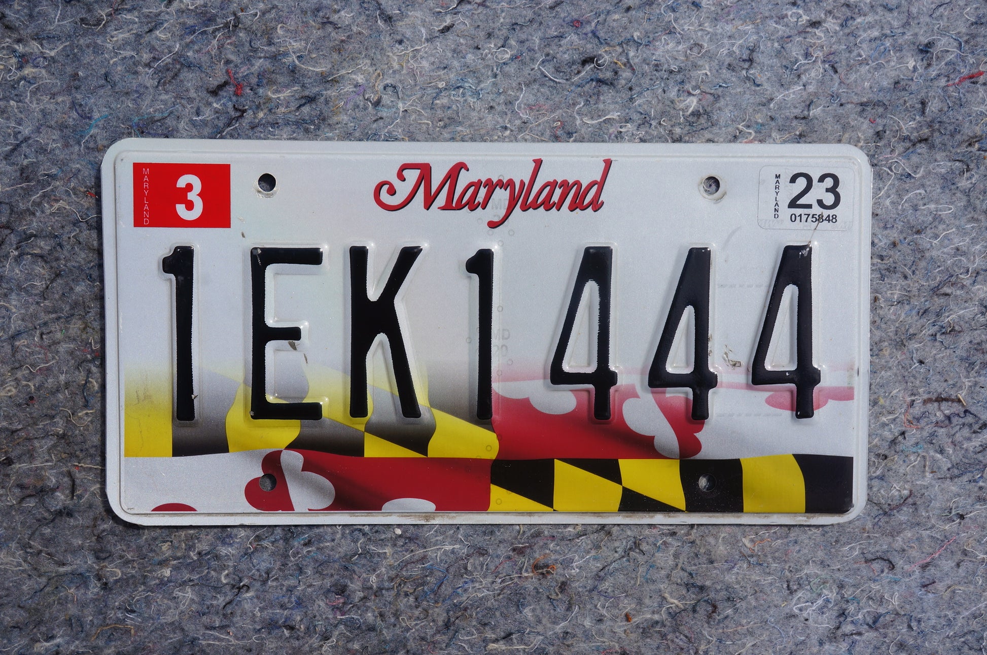 This listing is for one 2023 Maryland Flag License Plate # 1EK1444.