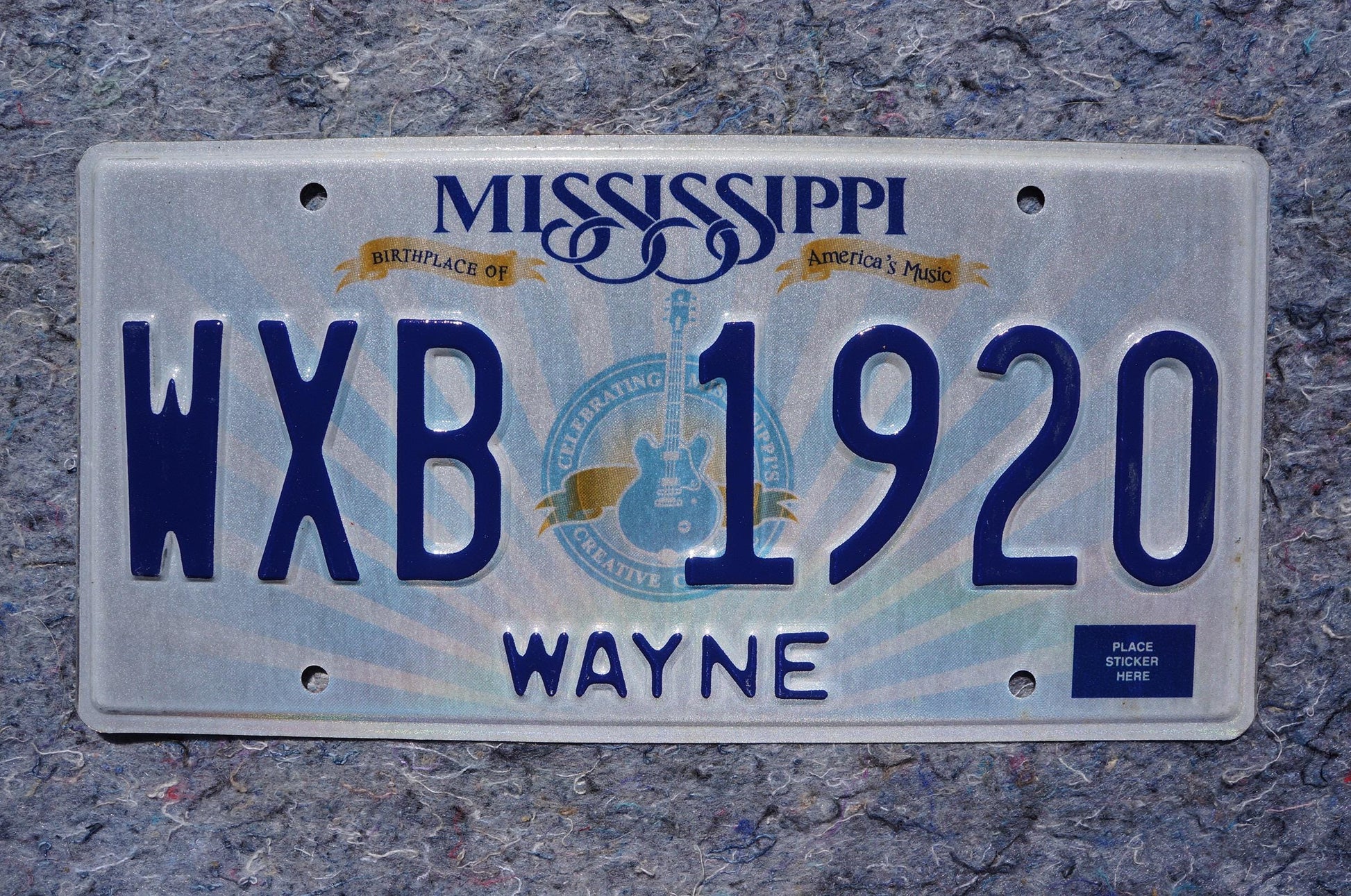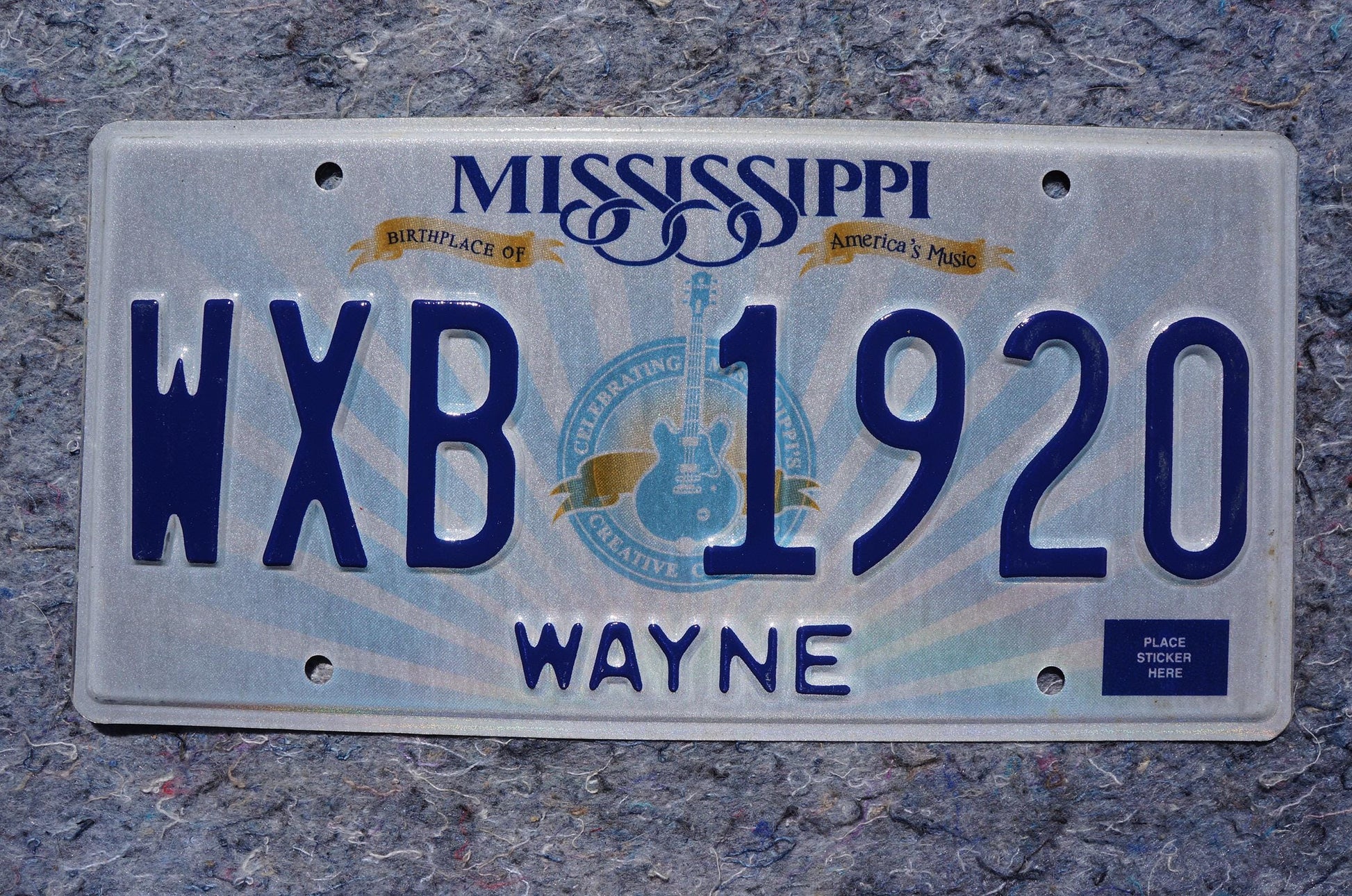 Mississippi Embossed Guitar License Plate # WXB 1920