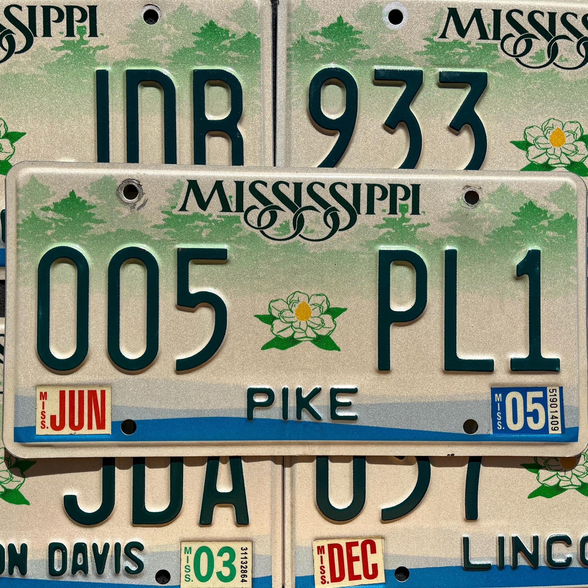 Mississippi MAGNOLIA Flower Green Graphic License Plate Tags GOOD Condition