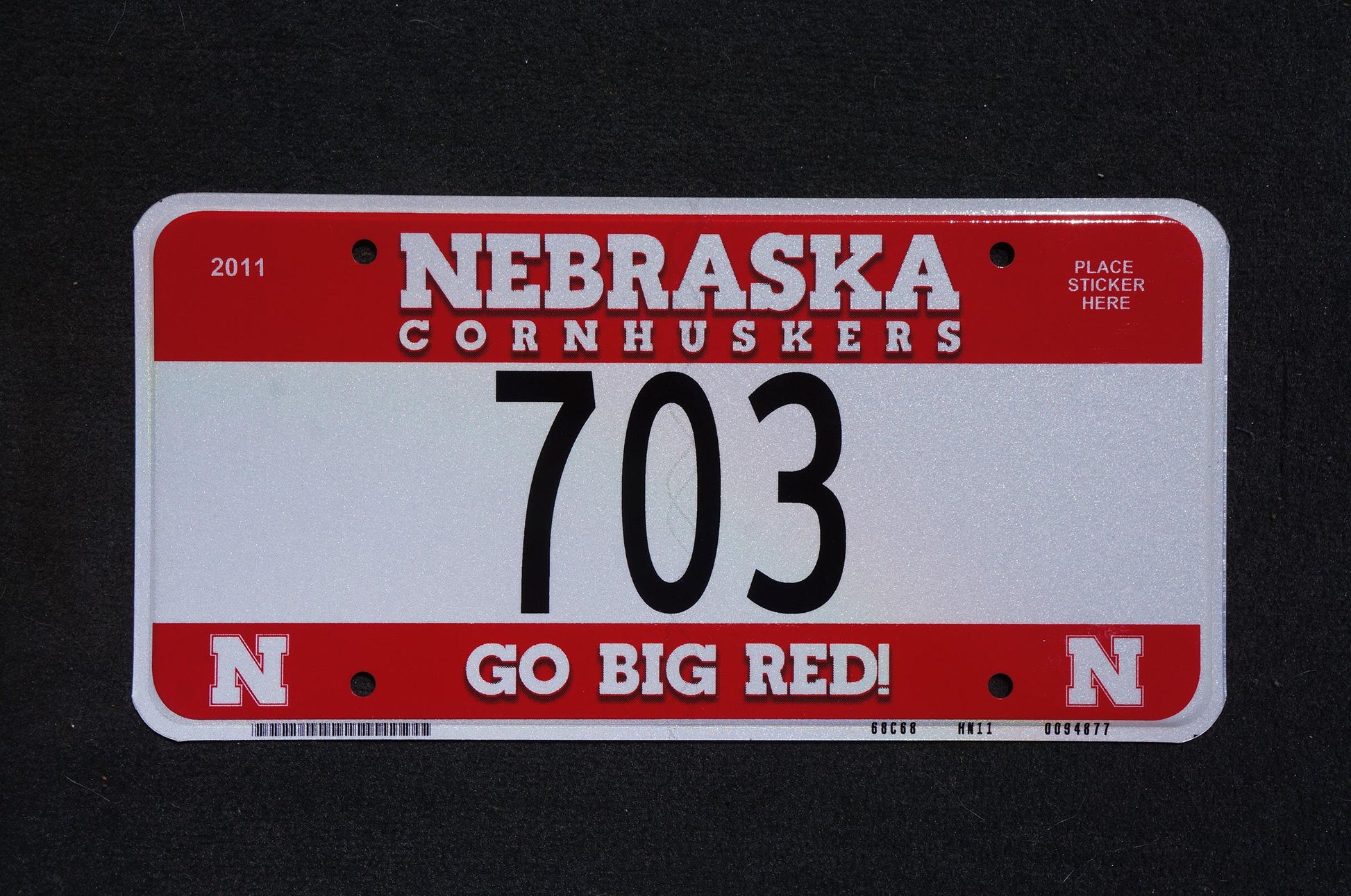 Nebraska CORNHUSKERS License Plate # 703 Go Big Red!