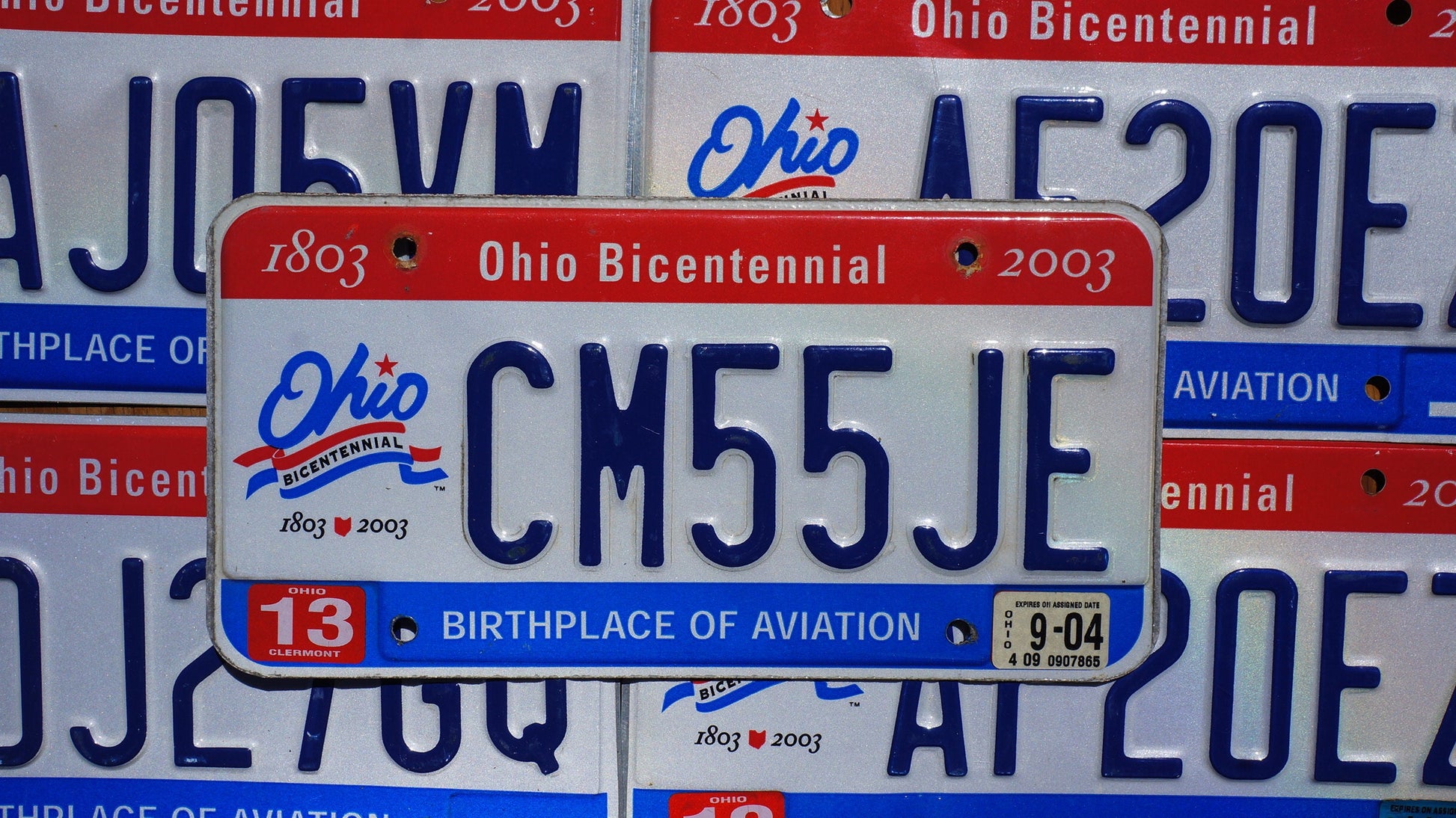 One or More - 2003 Ohio BICENTENNIAL License Plate - Red White Blue - Good Condition