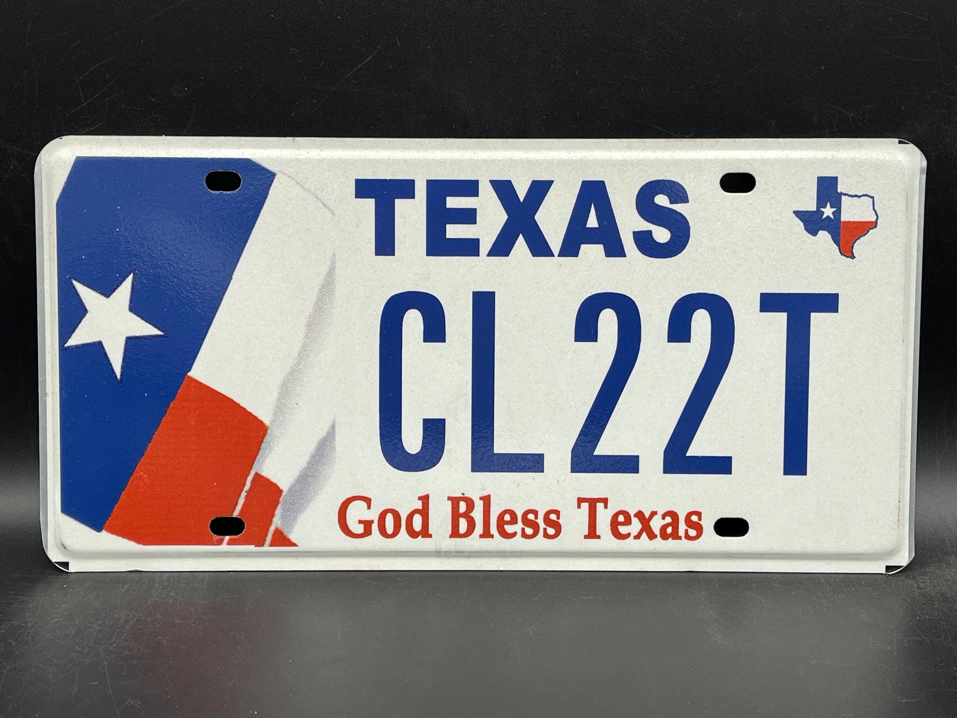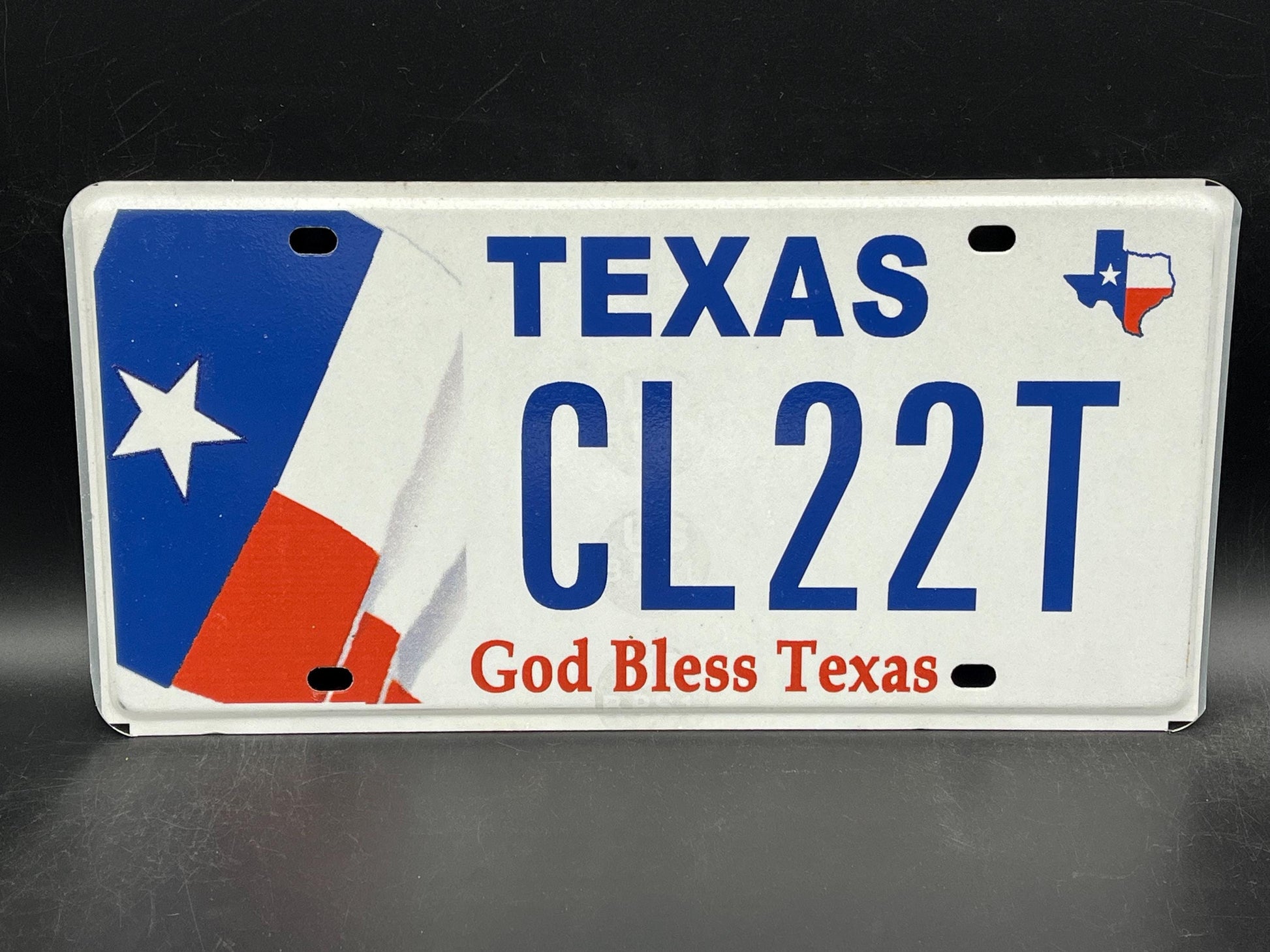 This listing is for One or More - One or More - TEXAS God Bless Texas Flag Graphic License Plate.