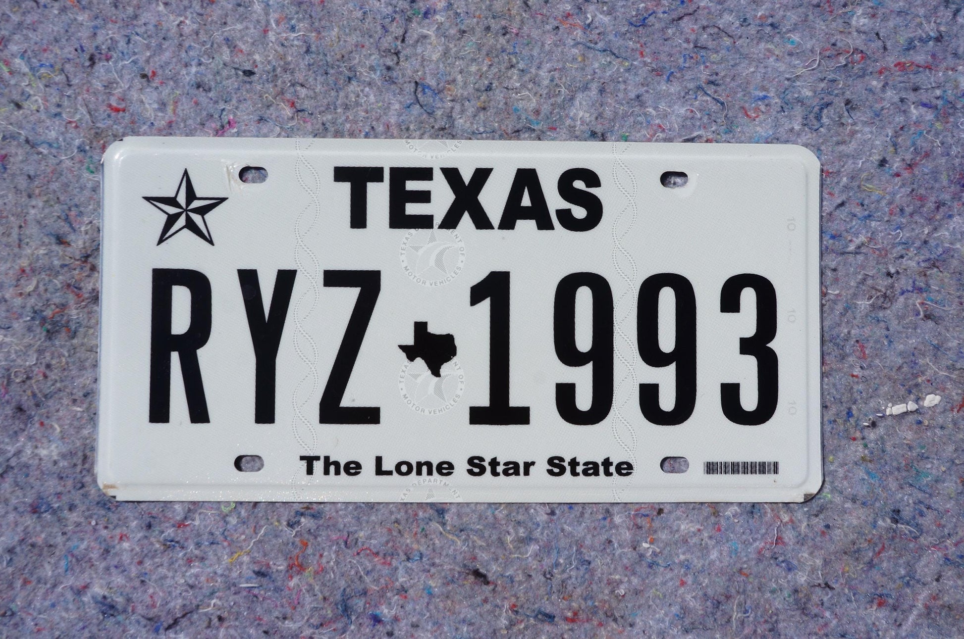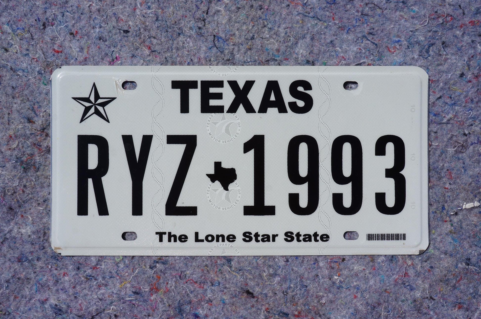Texas License Plate # RYZ - 1993 Black on White The Lone Star State