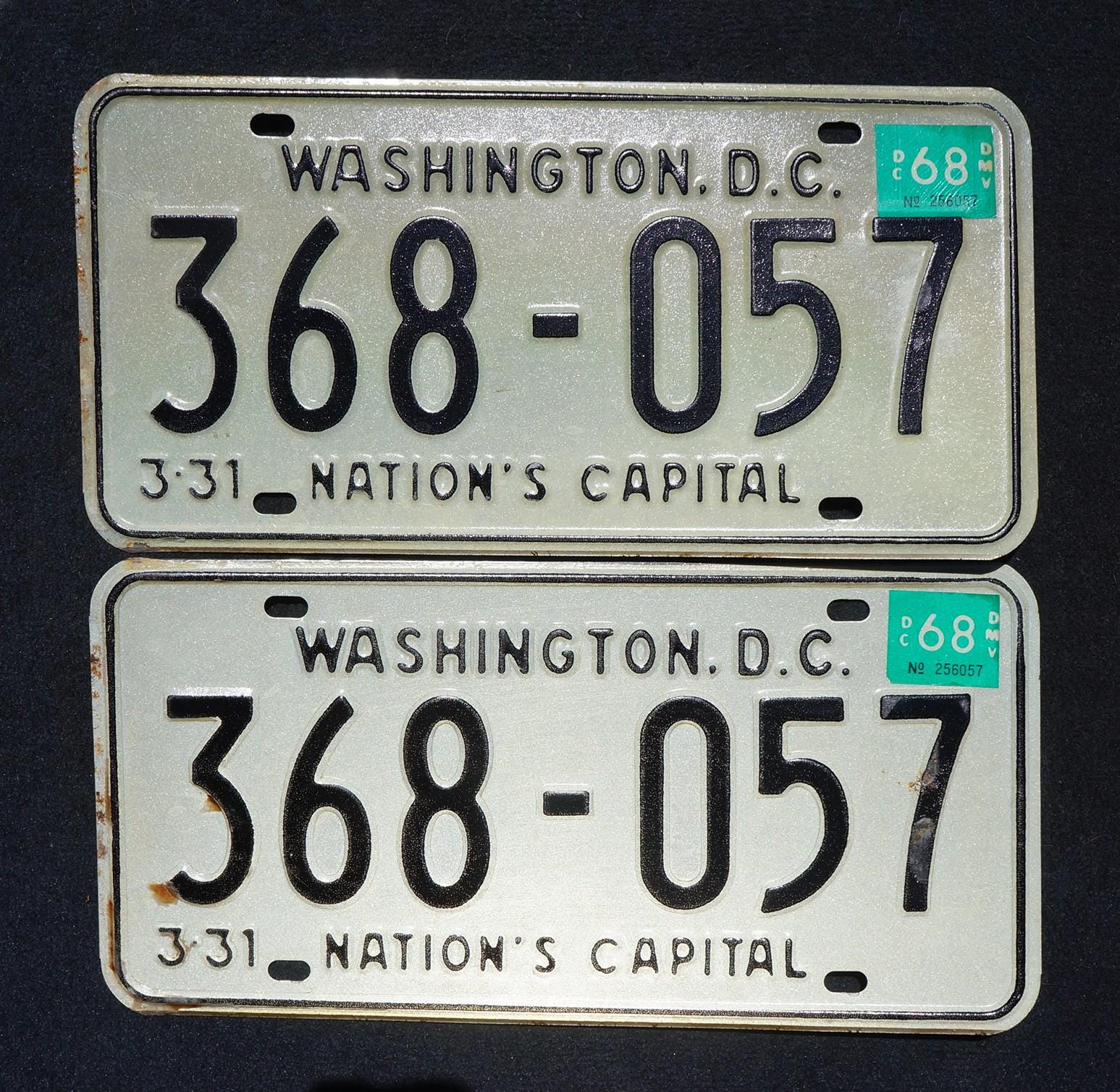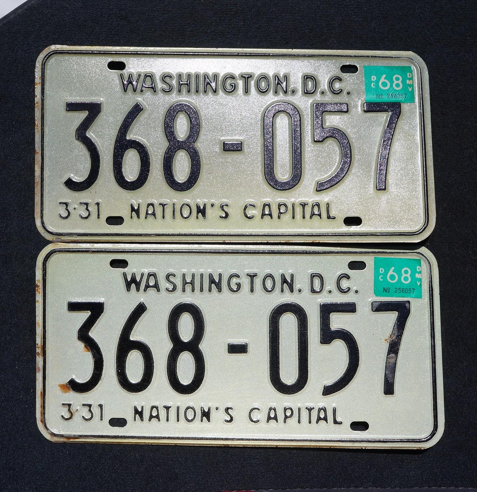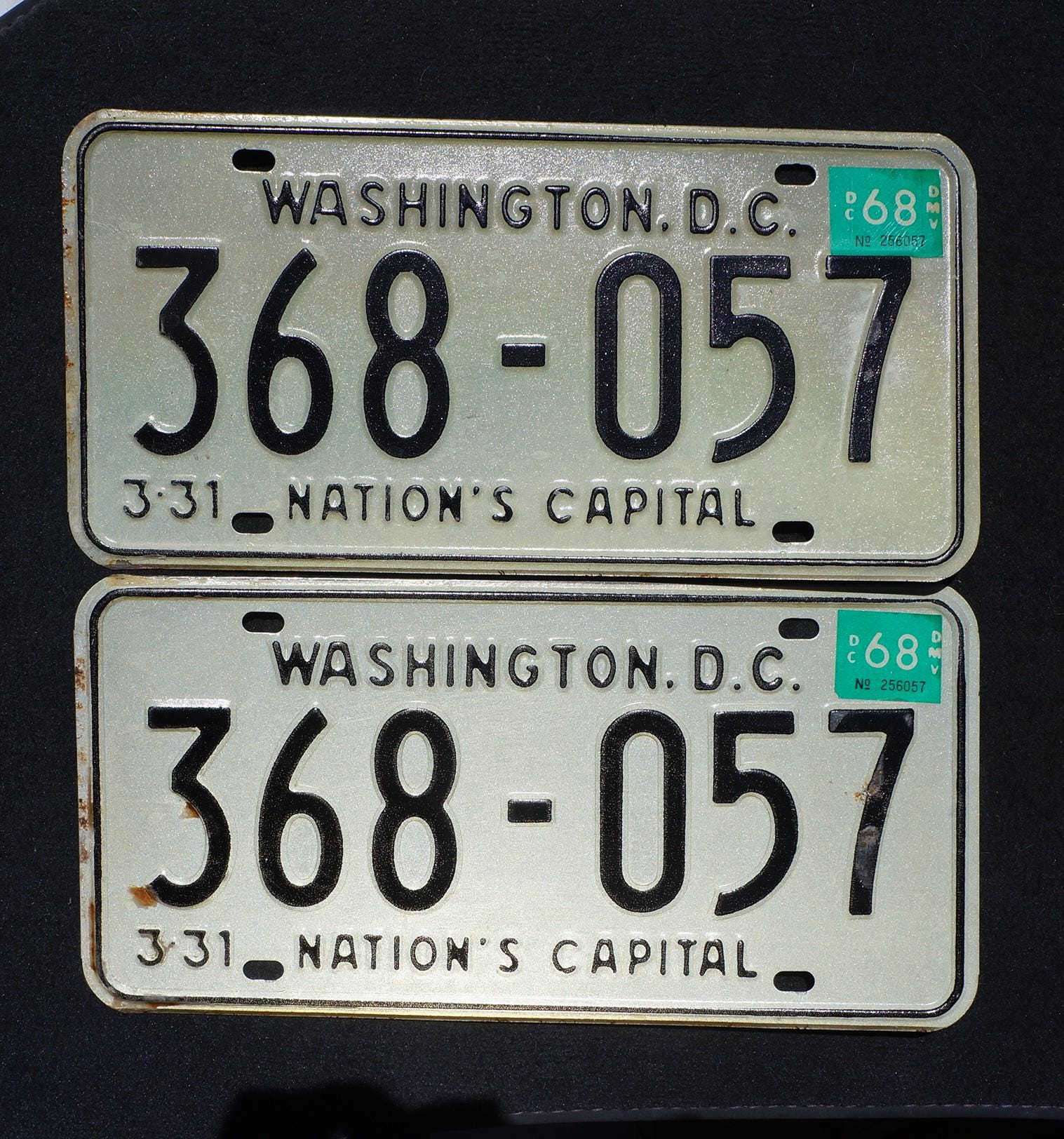 Vintage 1968 Washington DC District of Columbia License Plate PAIR / SET